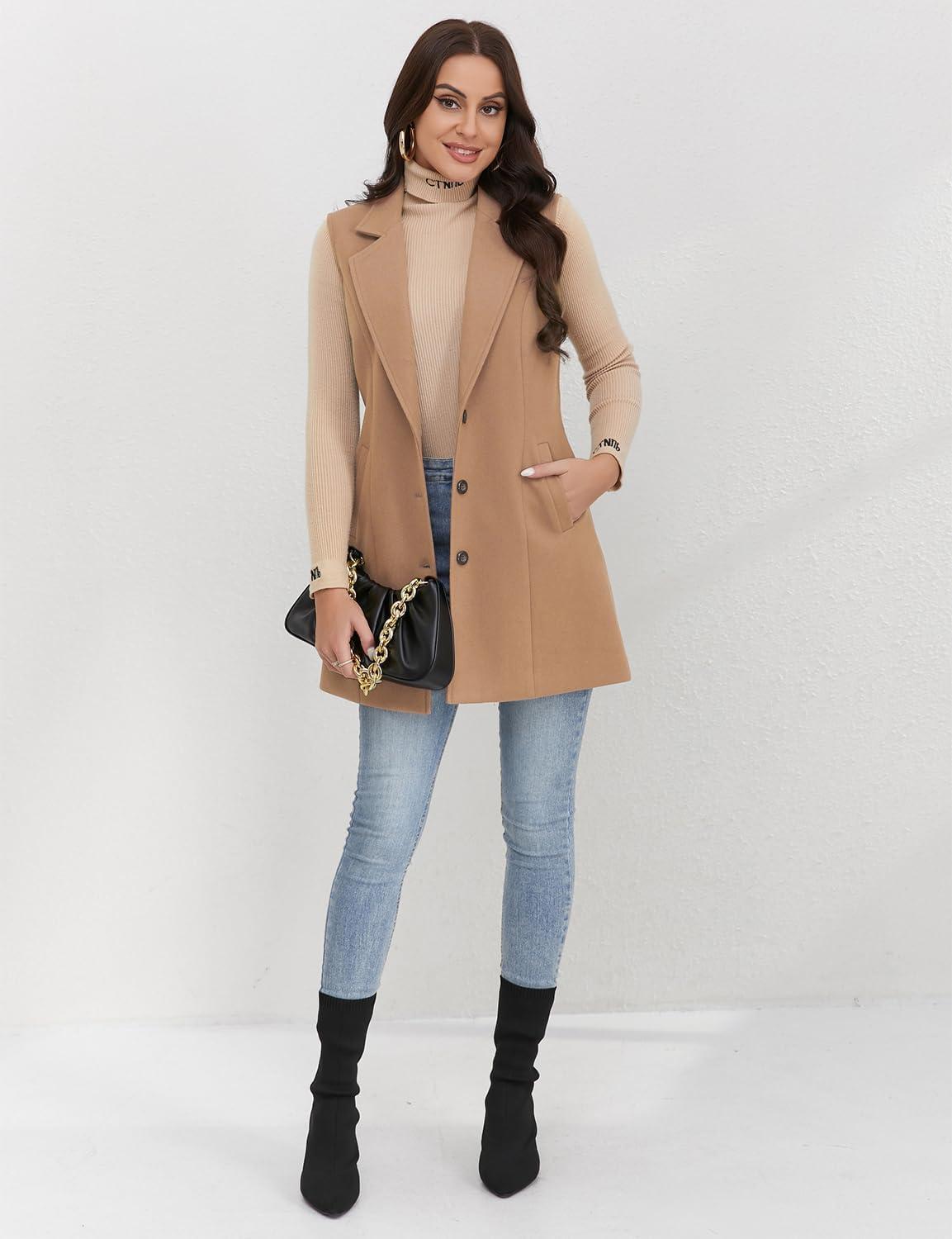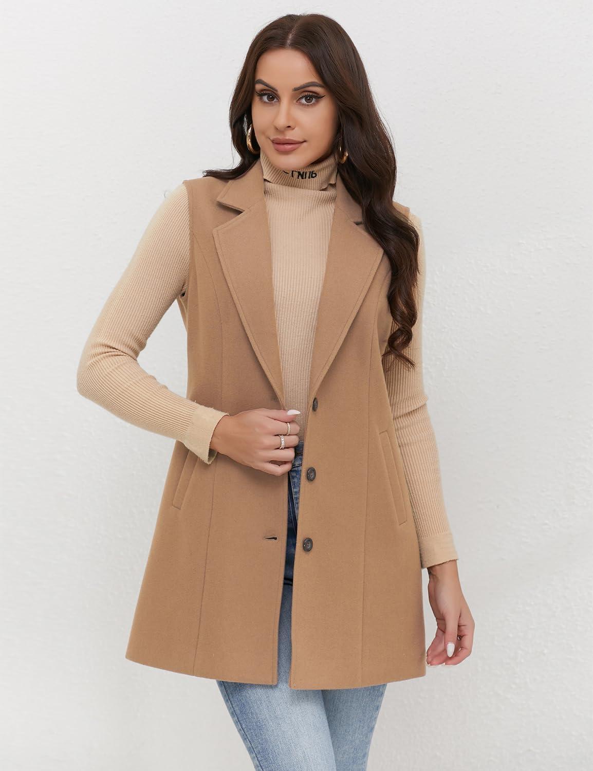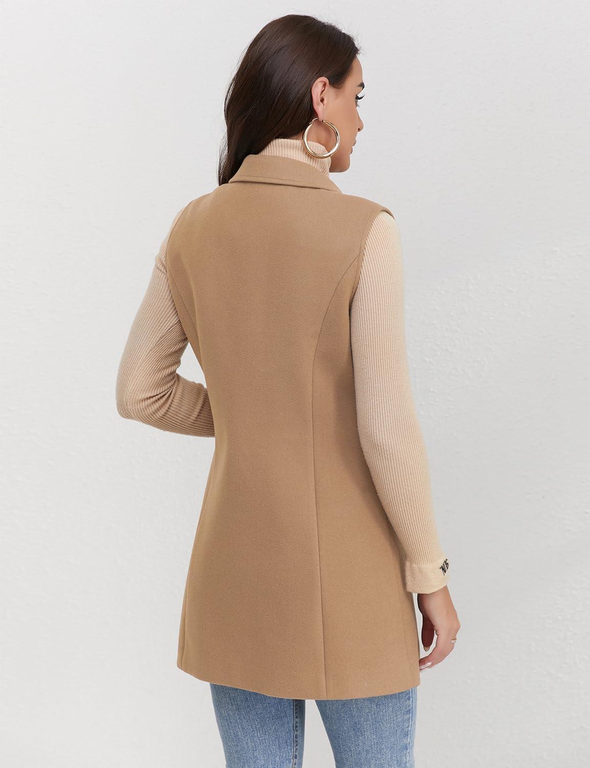 IDEALSANXUN Plaid Vest for Women Fall Winter Sleeveless Blazer Jackets(Pure Camel)