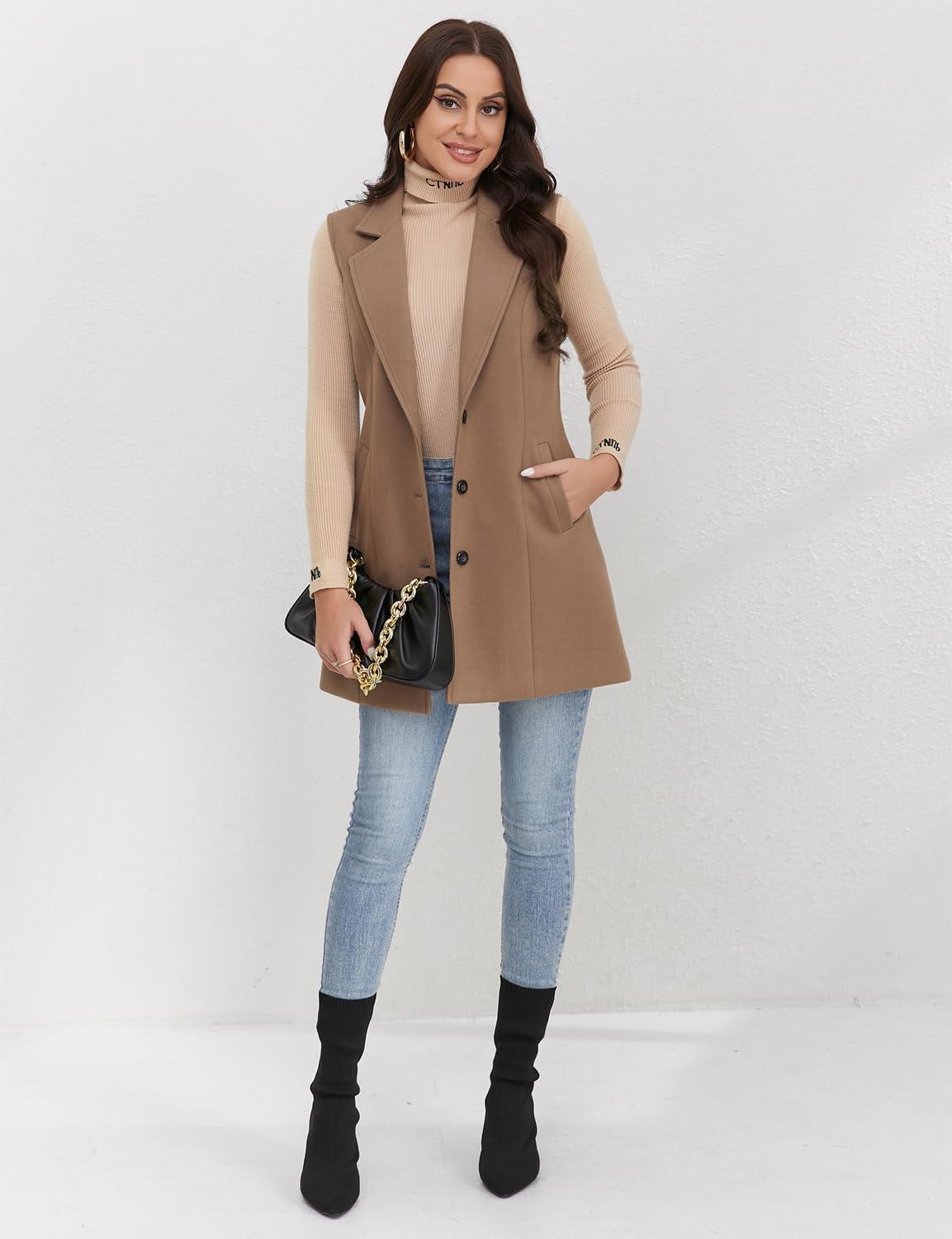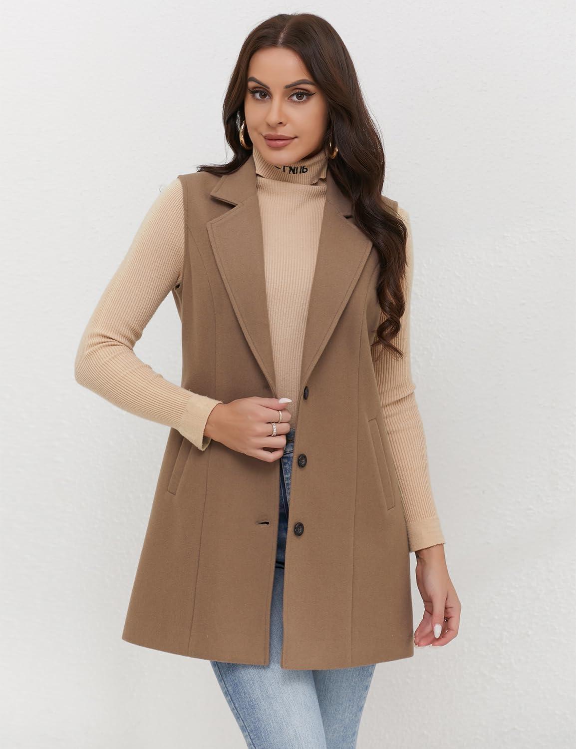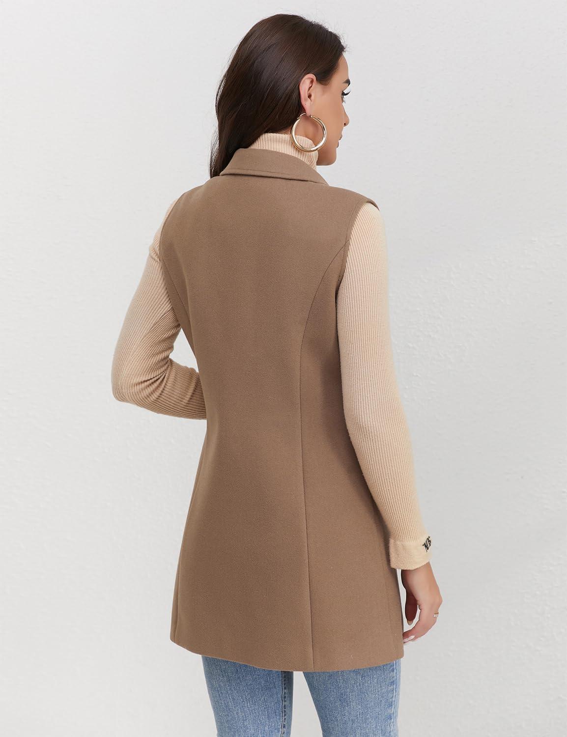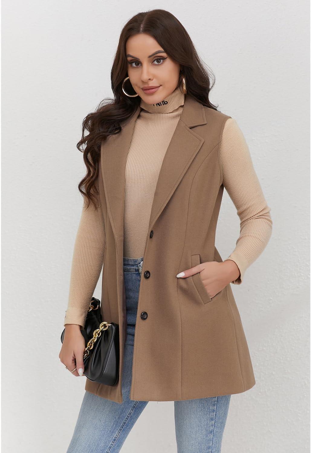 IDEALSANXUN Plaid Vest for Women Fall Winter Sleeveless Blazer Jackets(Pure Camel)