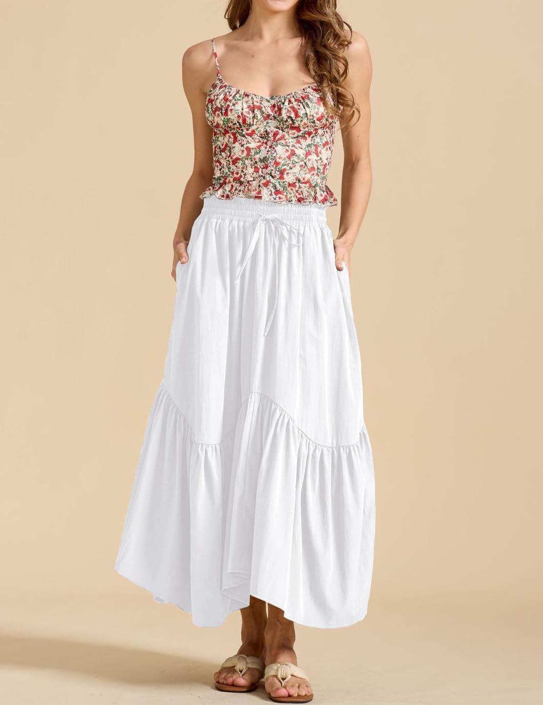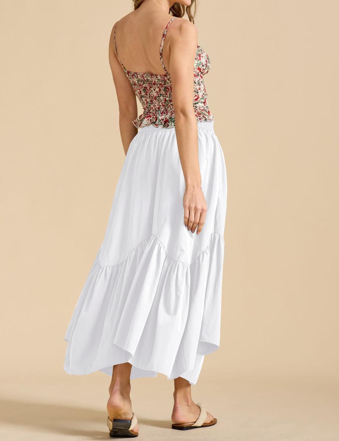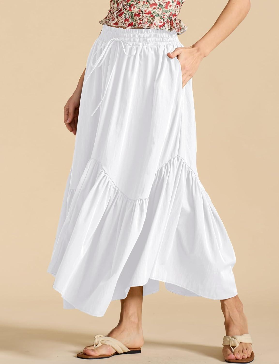 Be the first to review “IDEALSANXUN Ruffle Long Flowy Skirts for Women Summer A Line Elastic High Waisted Casual Beach Maxi Skirts with Pockets(White)” Cancel reply