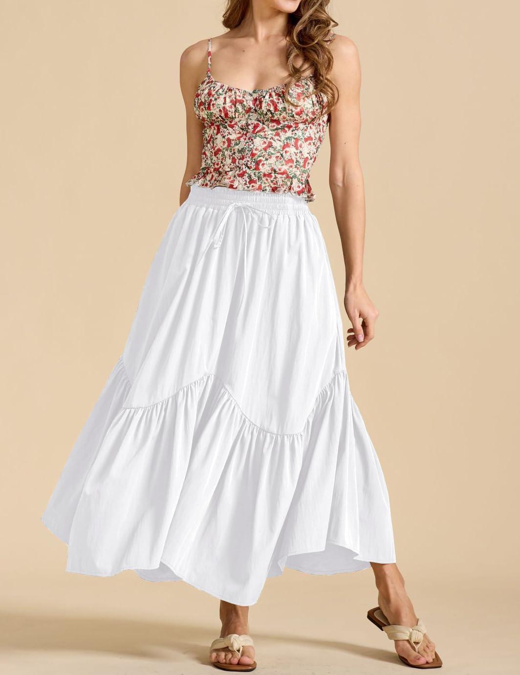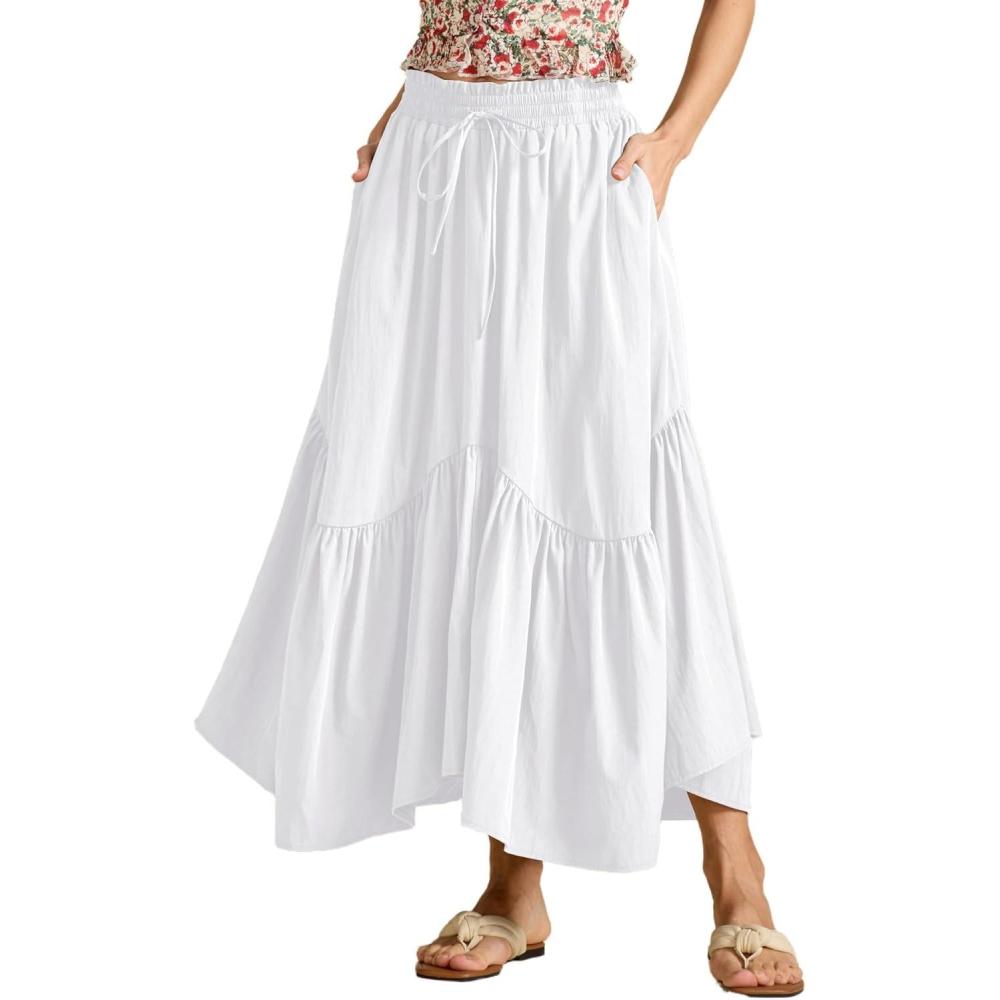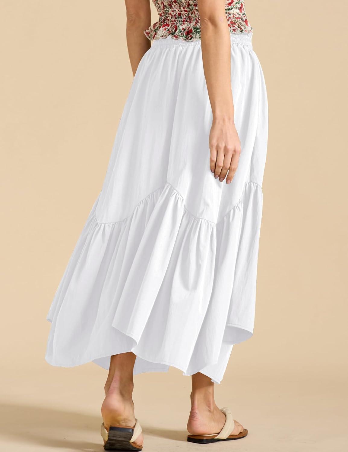Be the first to review “IDEALSANXUN Ruffle Long Flowy Skirts for Women Summer A Line Elastic High Waisted Casual Beach Maxi Skirts with Pockets(White)” Cancel reply