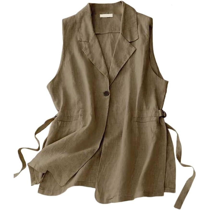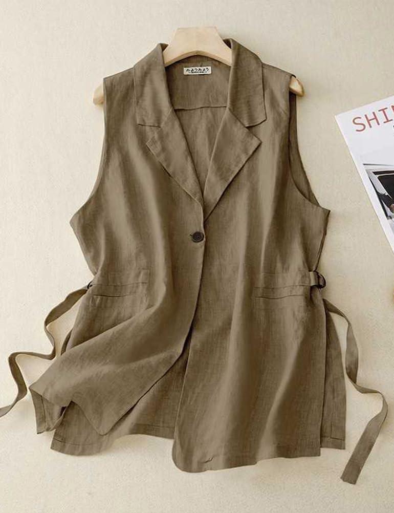 IDEALSANXUN Vest for Women Dressy Sleeveless Blazer Spring Summer Vest Tops Business Casual Outfits Office Work Clothes(Khaki)