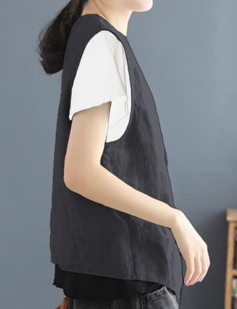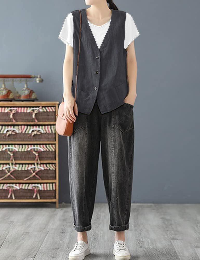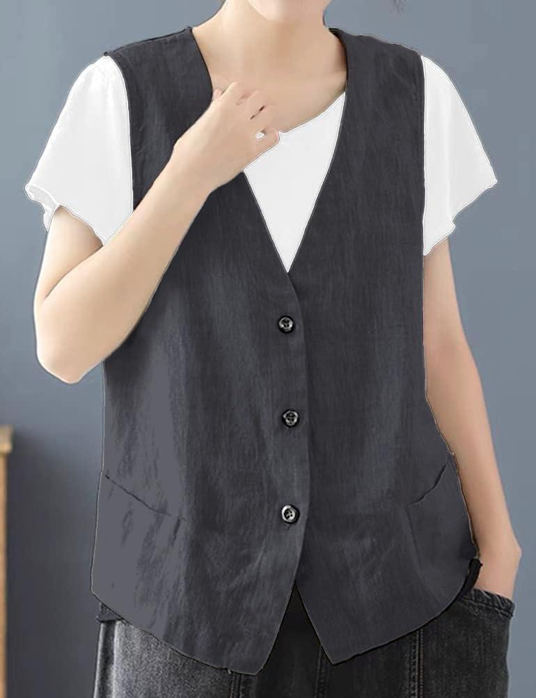 IDEALSANXUN Womens Cotton Linen Vest Casual Sleeveless Blazer Cardigans Lightweight Jacket Waistcoat(Dark Grey)
