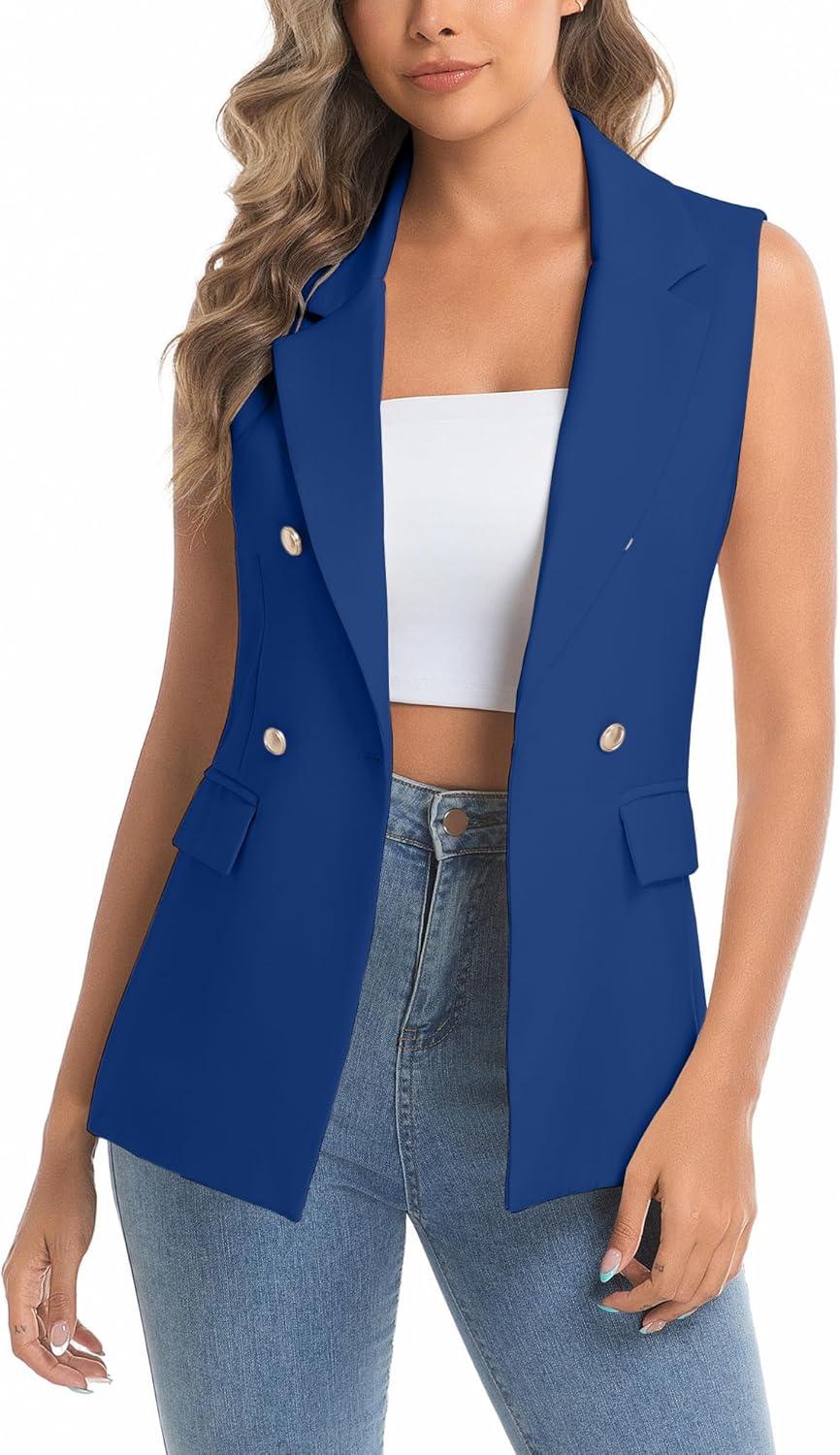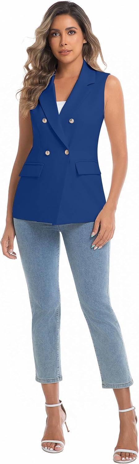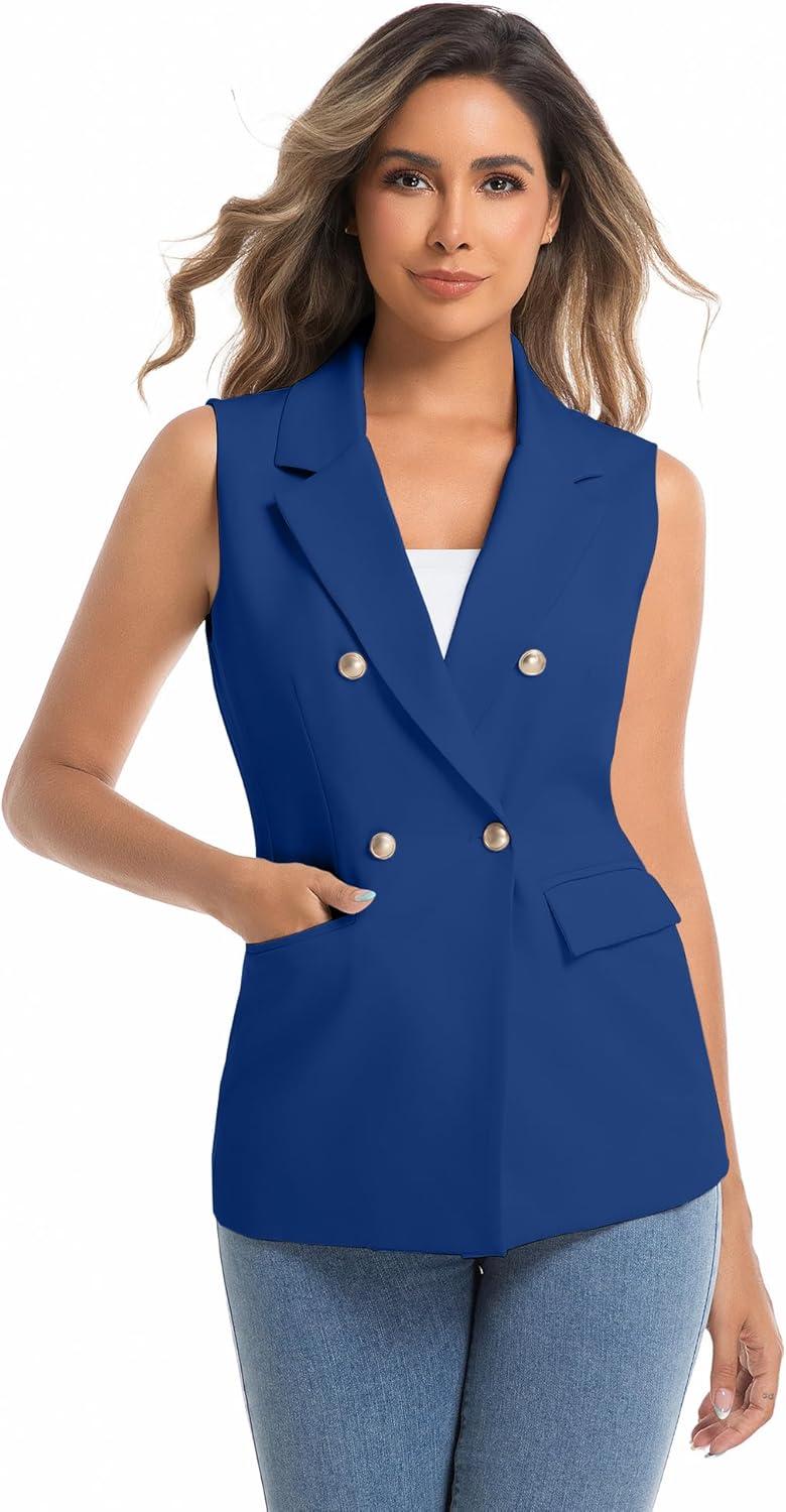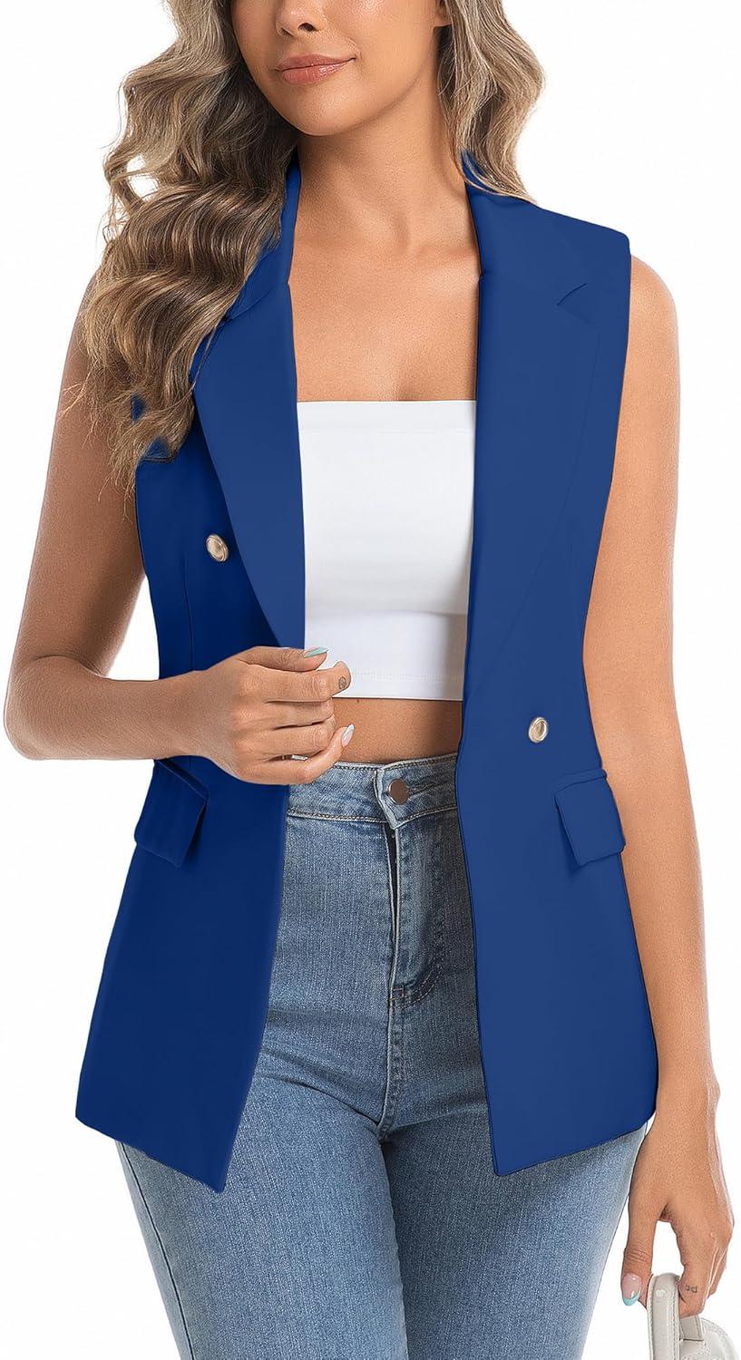 IDEALSANXUN Womens Double Breasted Vest Tops Sleeveless Blazer Spring Summer Suit Jackets(Blue)