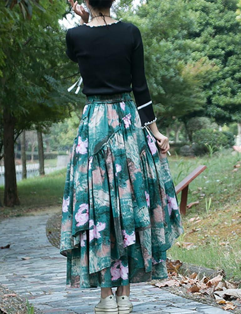 imageIDEALSANXUN Womens Elastic Waist Aline Cotton Lined Retro Maxi Hem Pleated Long SkirtsPrint 001