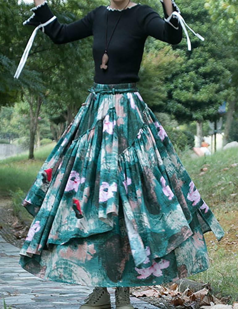 Get more for your money with our exclusive bundle deals on IDEALSANXUN Womens Elastic Waist Aline Cotton Lined Retro Maxi Hem Pleated Long Skirts(Print 120) and accessories.