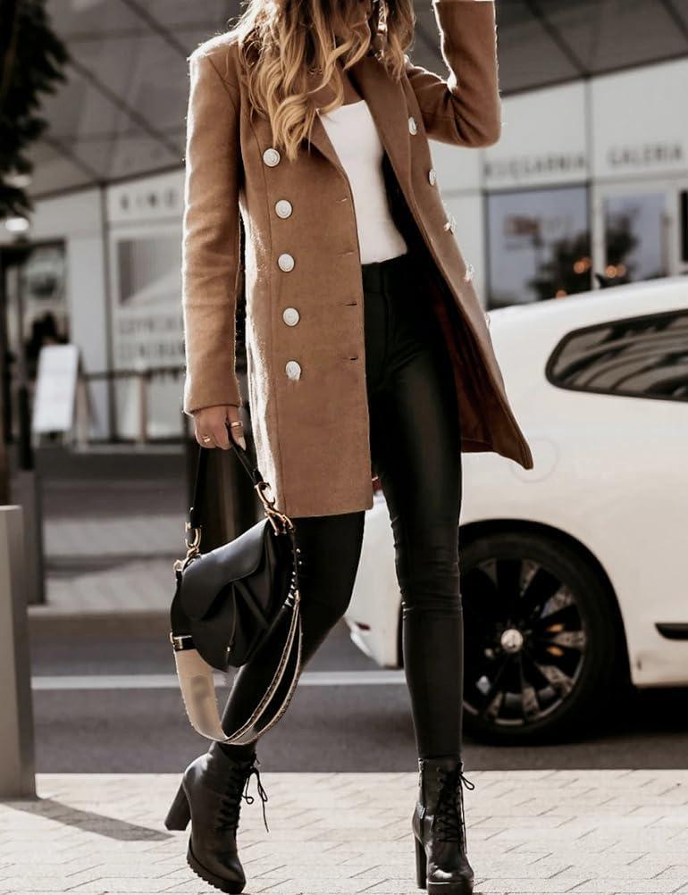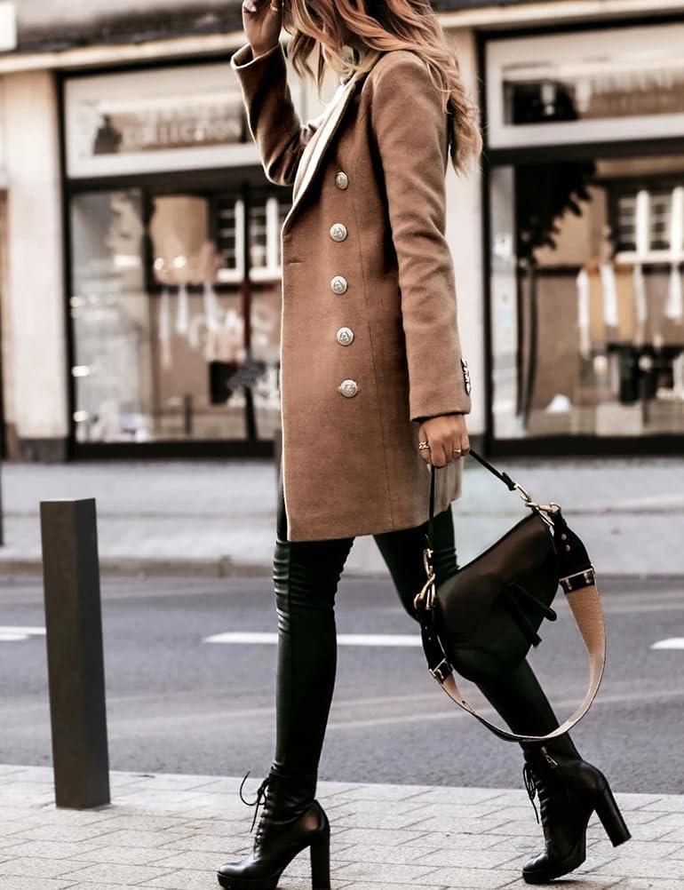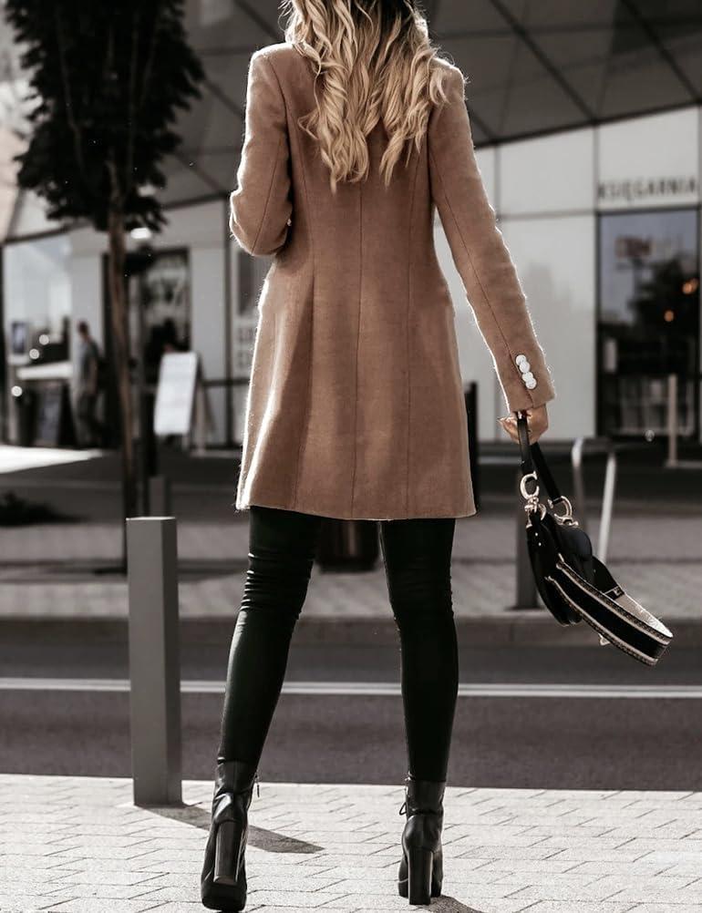 IDEALSANXUN Womens Fall Winter Double Breasted Wool Trench Coat Jackets(Khaki)
