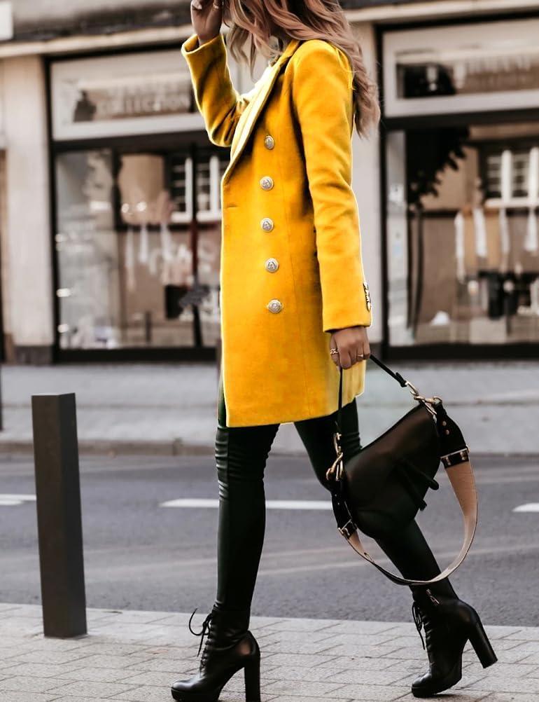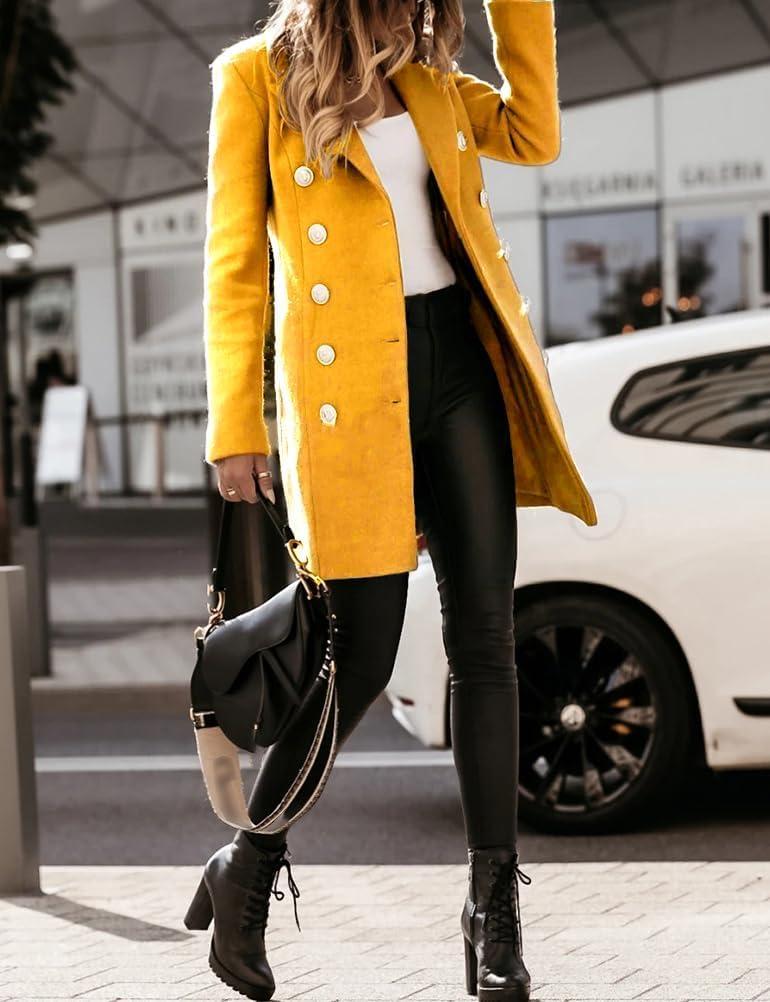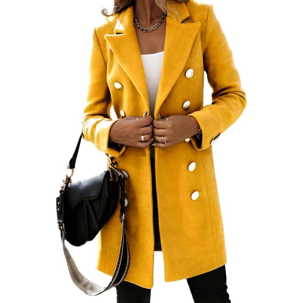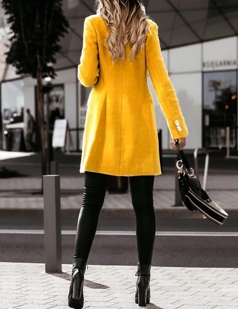 IDEALSANXUN Womens Fall Winter Double Breasted Wool Trench Coat Jackets(Yellow)