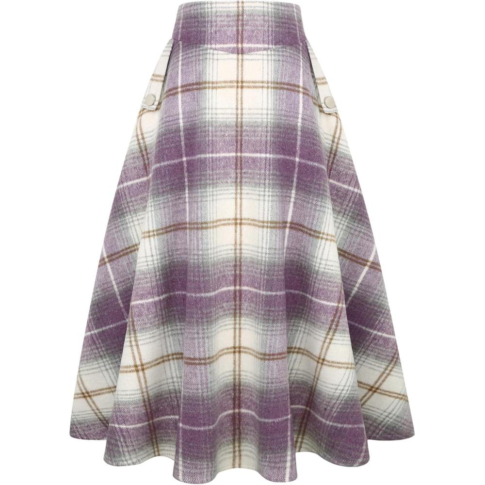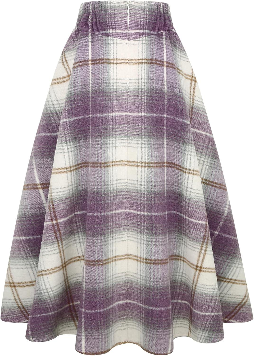 IDEALSANXUN Women’s Fall Winter High Waisted Wool Plaid A-line Long Skirt(Plaid Purple)