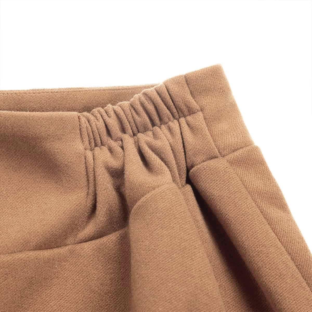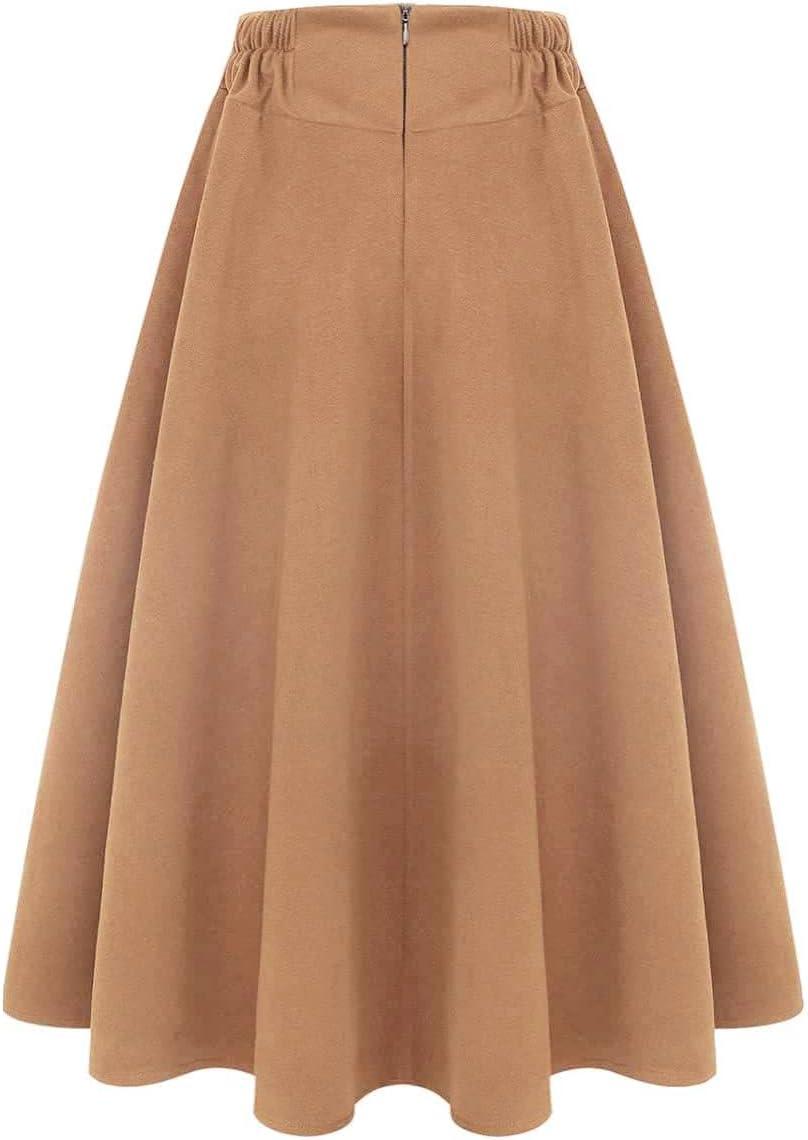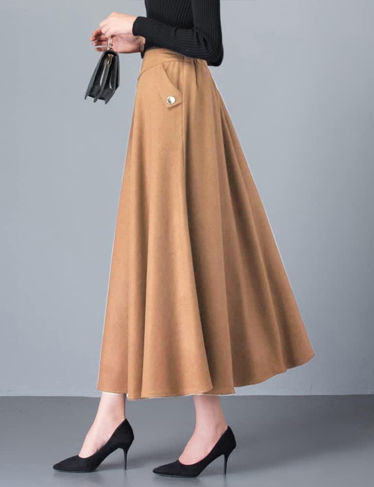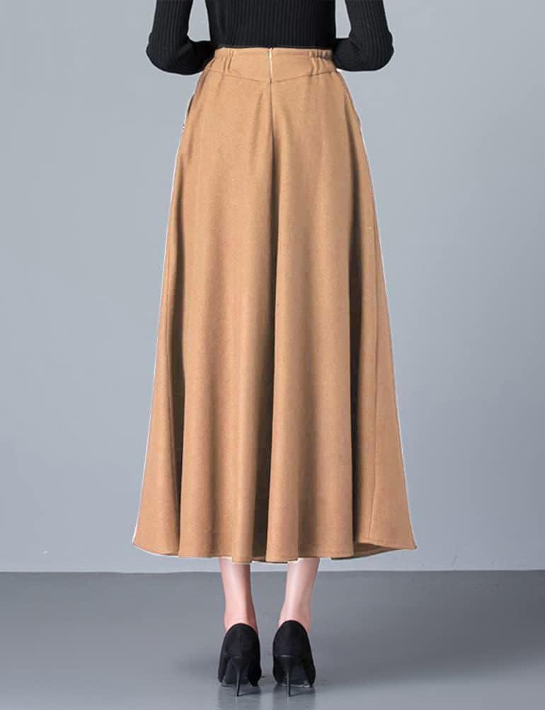 IDEALSANXUN Women’s Fall Winter High Waisted Wool Plaid A-line Long Skirt(Pure Khaki)