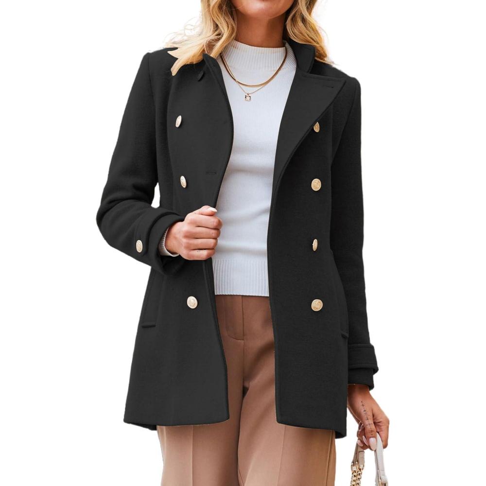 IDEALSANXUN Womens Fall Winter Peacoat Wool Coat Double Breasted Blazer Jacket Trench Coat(Black)