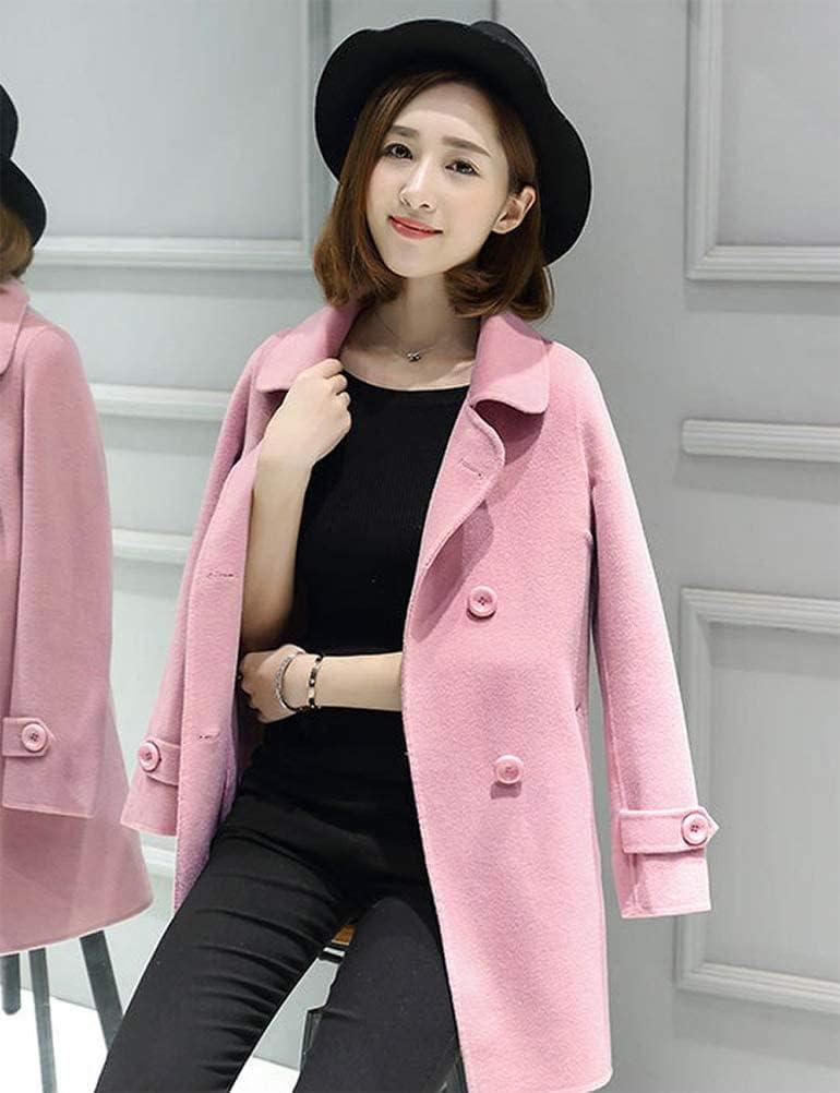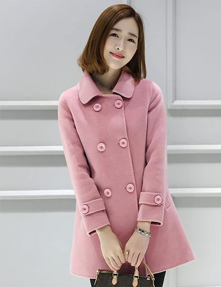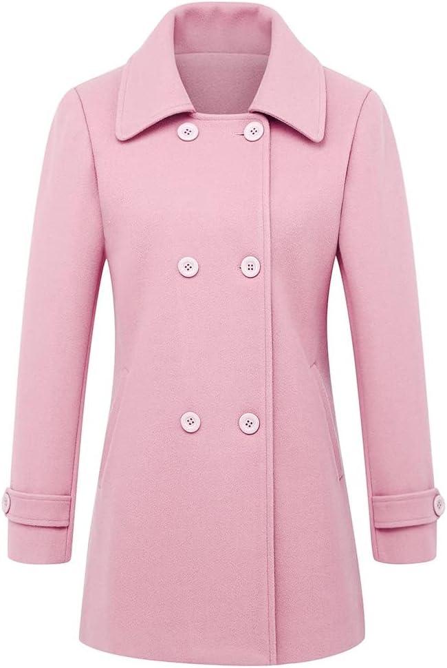 IDEALSANXUN Womens Fall Winter Wool Coats Peacoat Double Breasted Trench Coats(Pink)