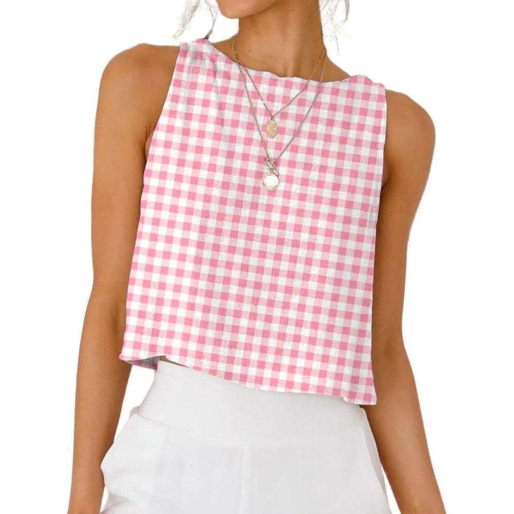 IDEALSANXUN Womens Gingham Tank Tops Spring Summer Casual Crop Cotton Sleeveless Shirts Blouses(Pink)