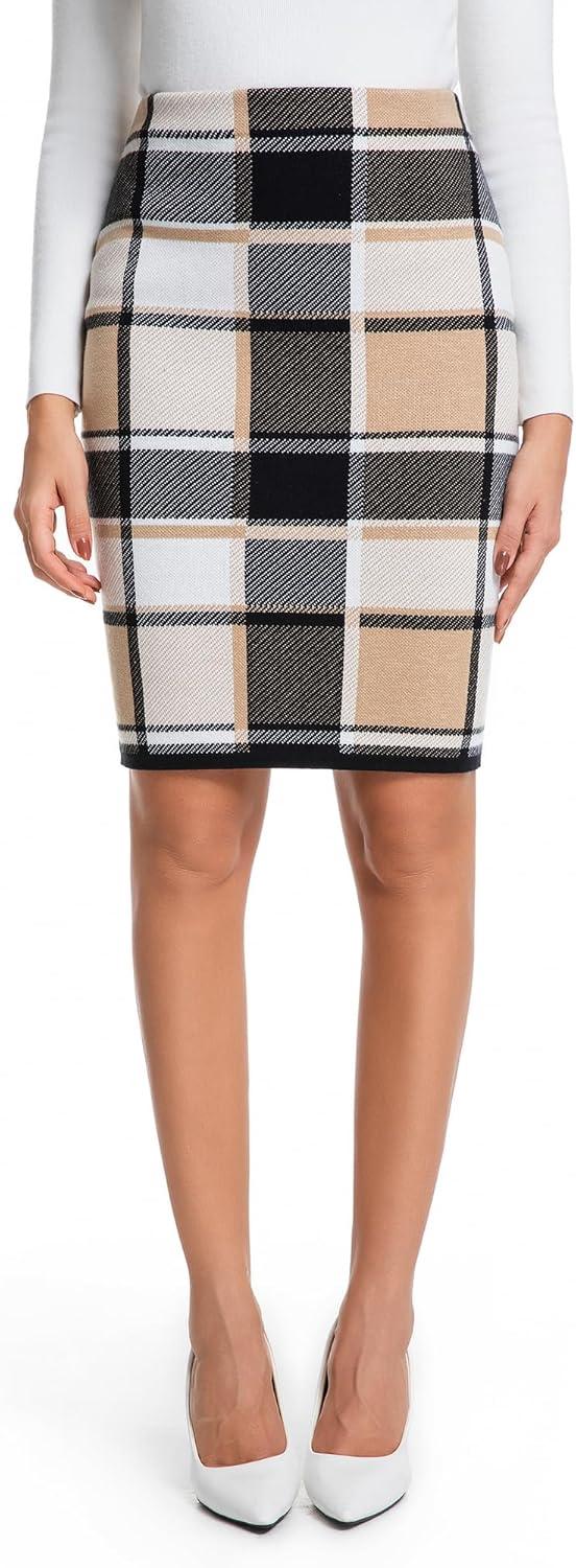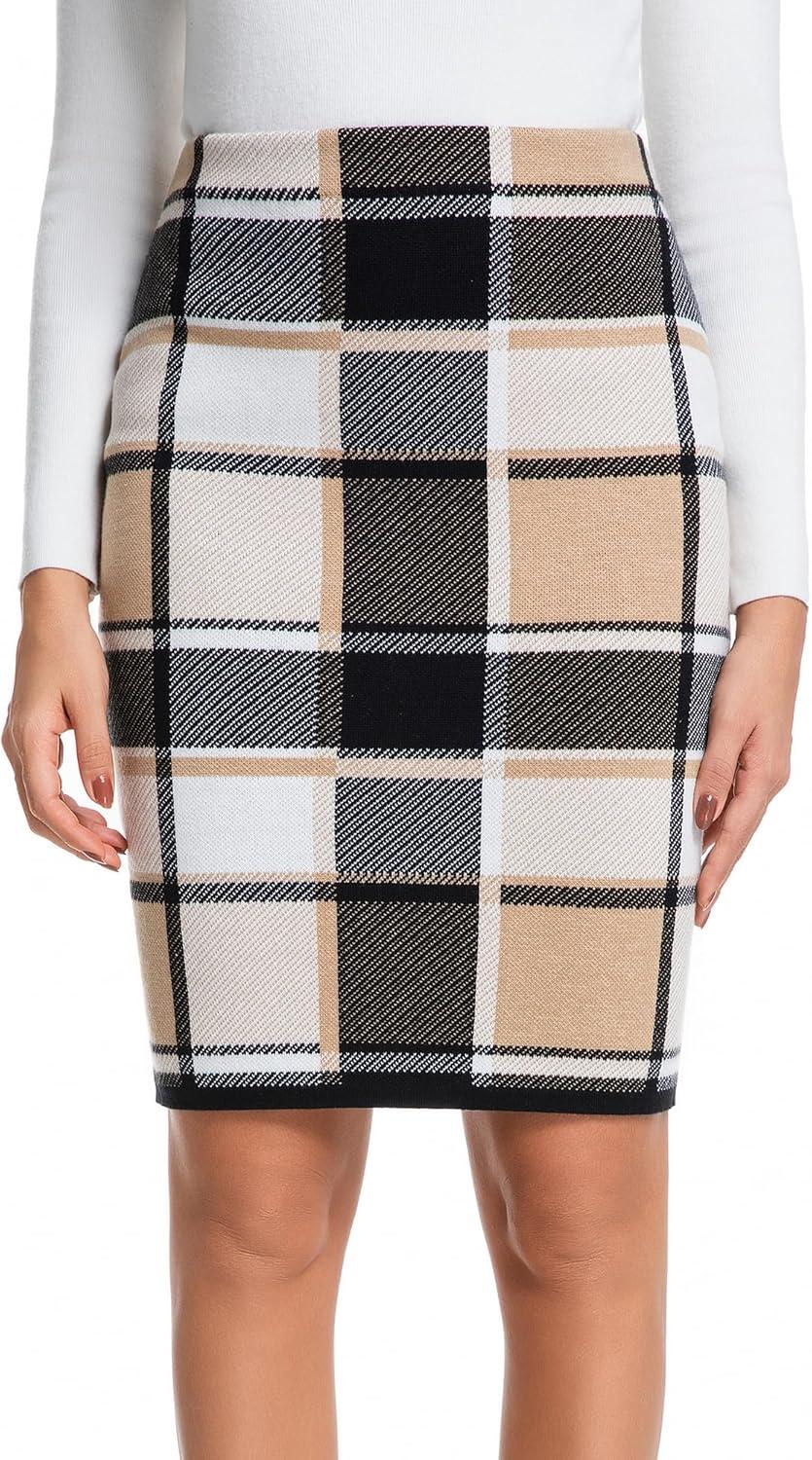 IDEALSANXUN Womens Knee Length Plaid Skirt Fall Winter High Waisted Bodycon Pencil Sweater Skirt(Brown New)
