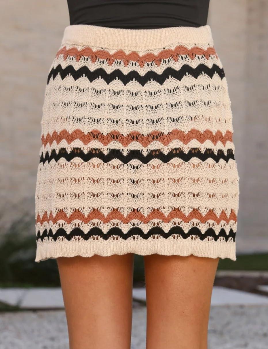 IDEALSANXUN Womens Knit Striped Skirts Fall Winter Pencil Stretch Mini Skirt(Beige)