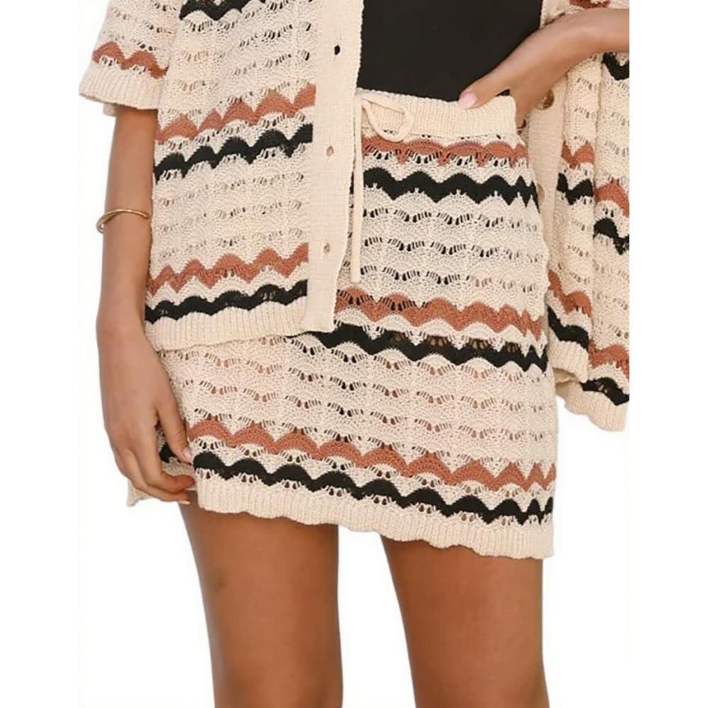 imageIDEALSANXUN Womens Knit Striped Skirts Fall Winter Pencil Stretch Mini SkirtBeige