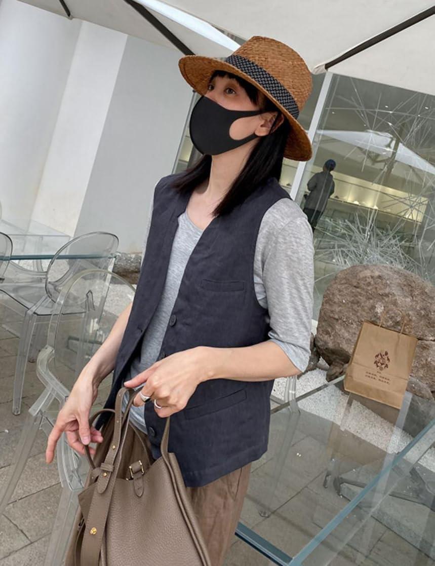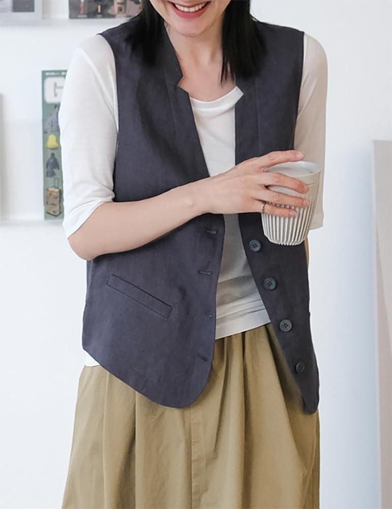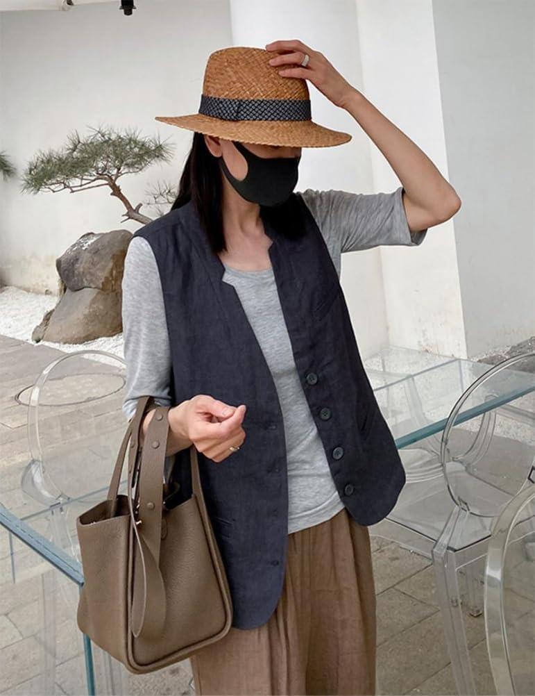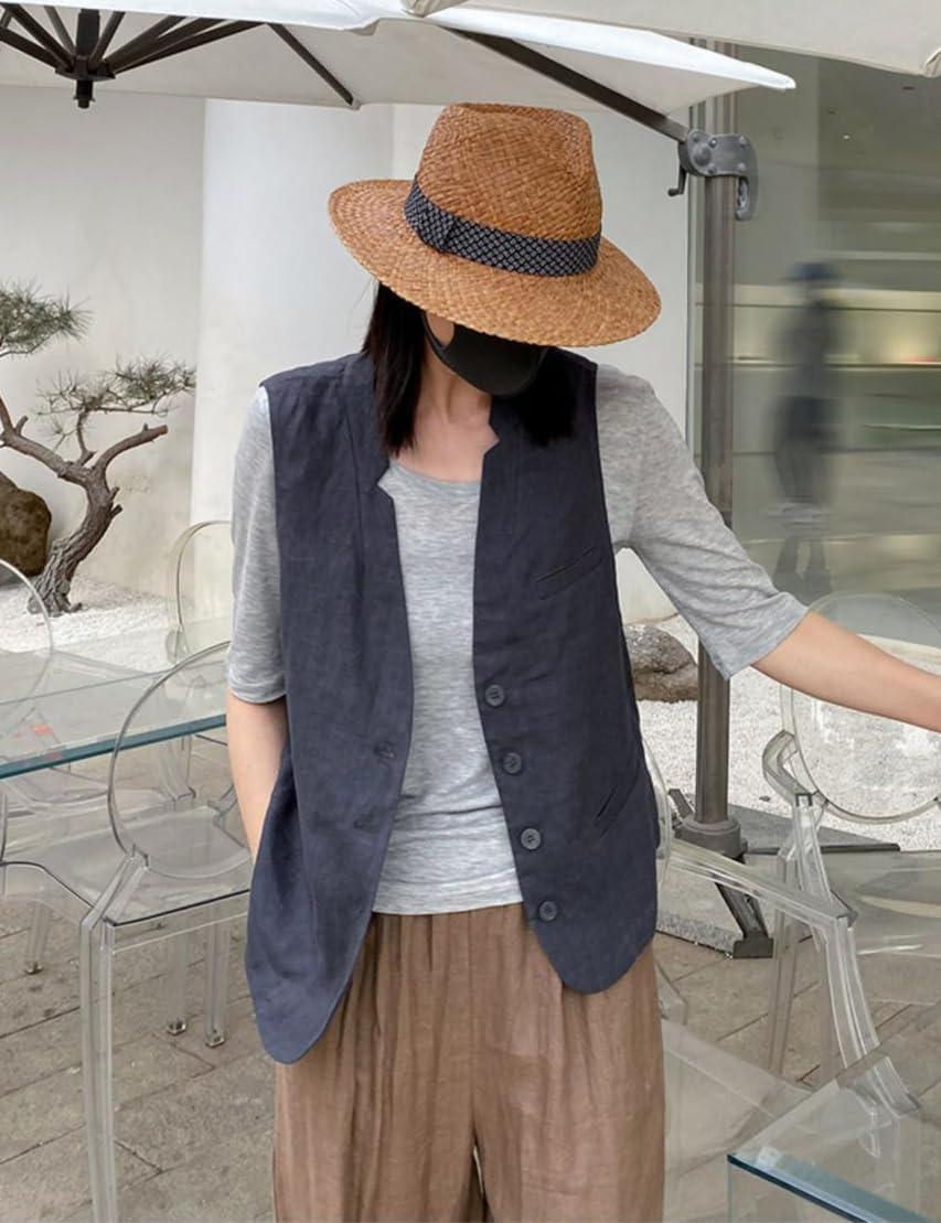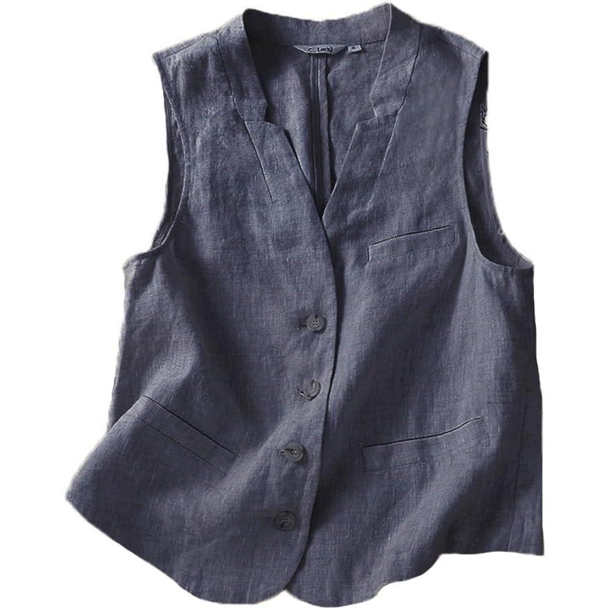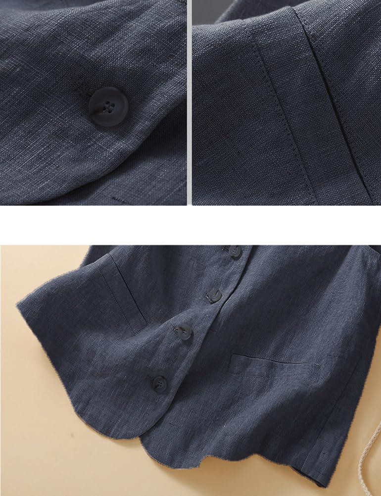 IDEALSANXUN Womens Linen Vest Casual Lightweight Sleeveless Blazer Spring Summer Jackets(Navy)