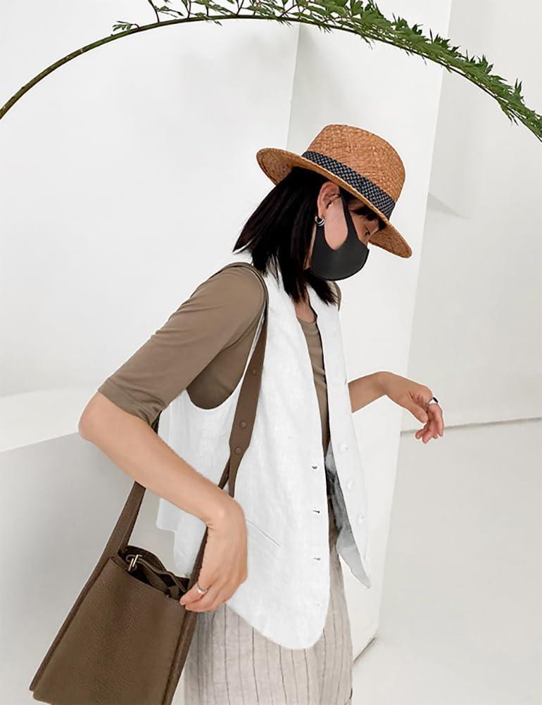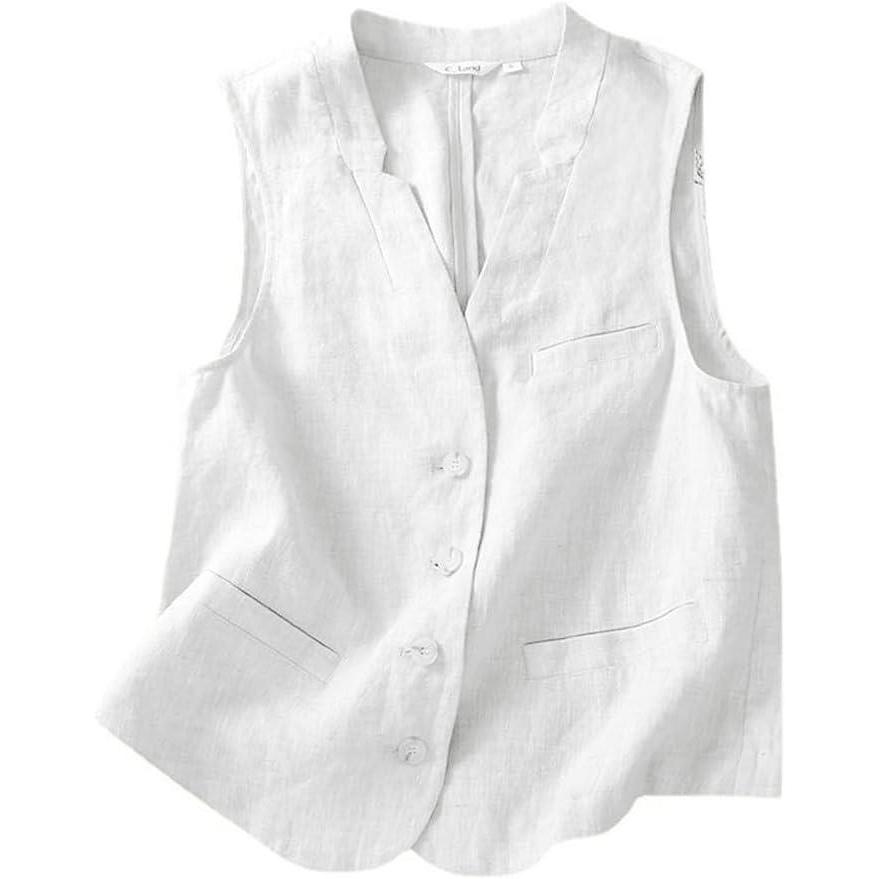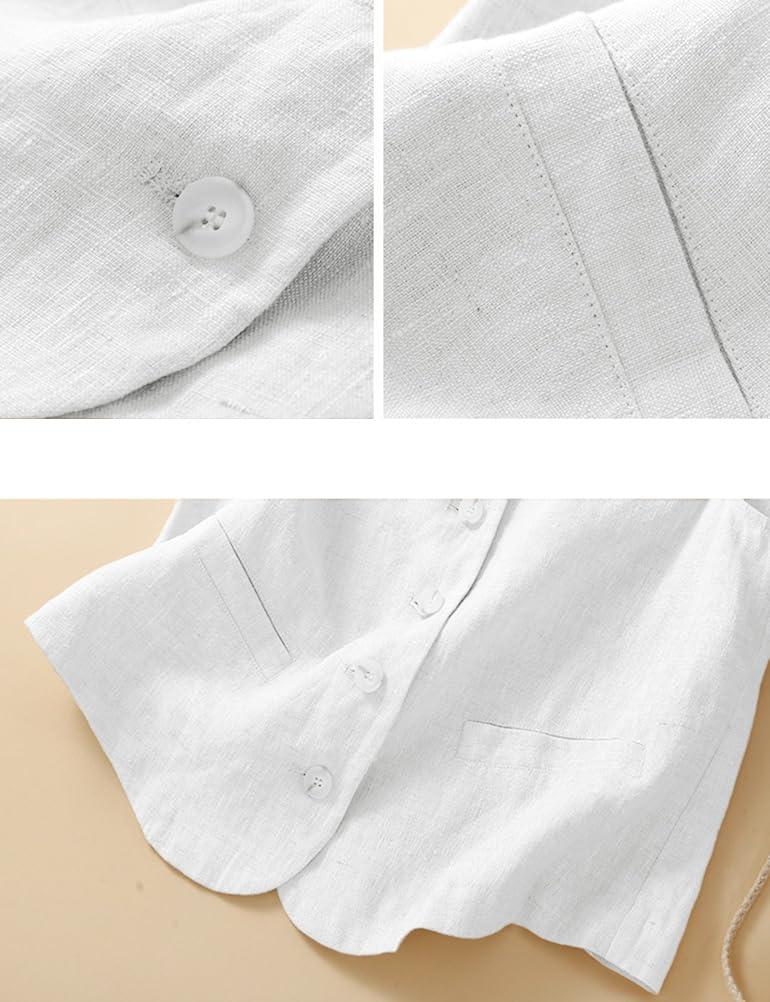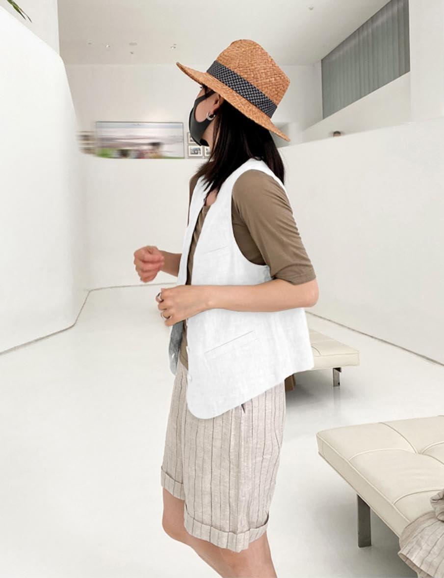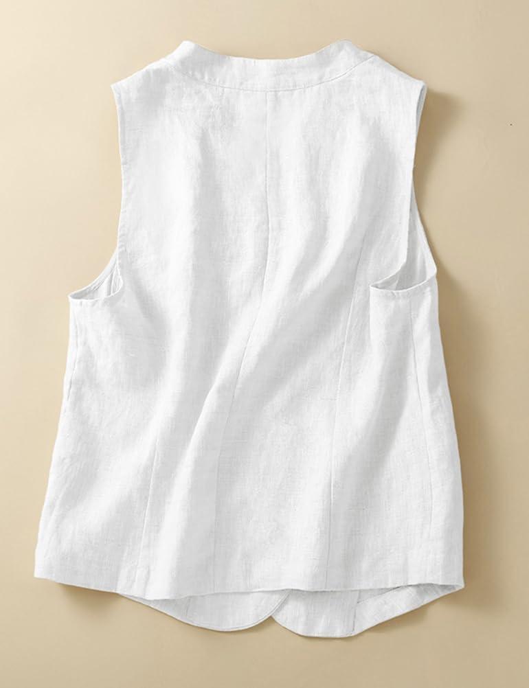 IDEALSANXUN Womens Linen Vest Casual Lightweight Sleeveless Blazer Spring Summer Jackets(White)