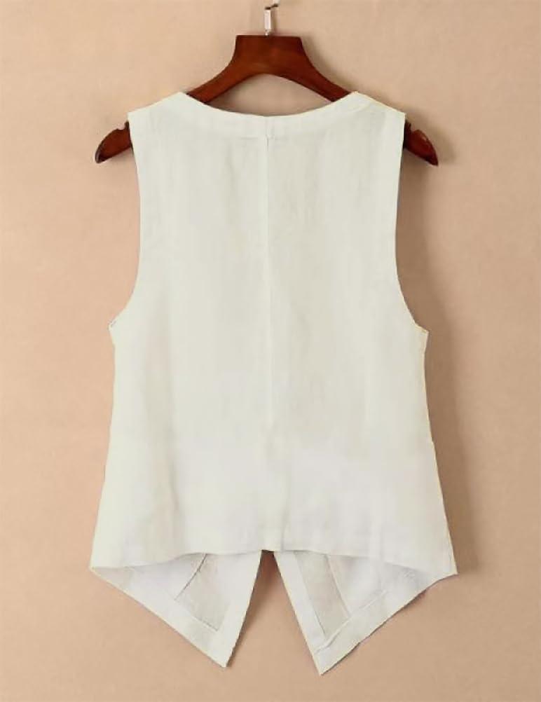 imageIDEALSANXUN Womens Linen Vest Tops Sleeveless Spring Summer Blazer JacketsBlack