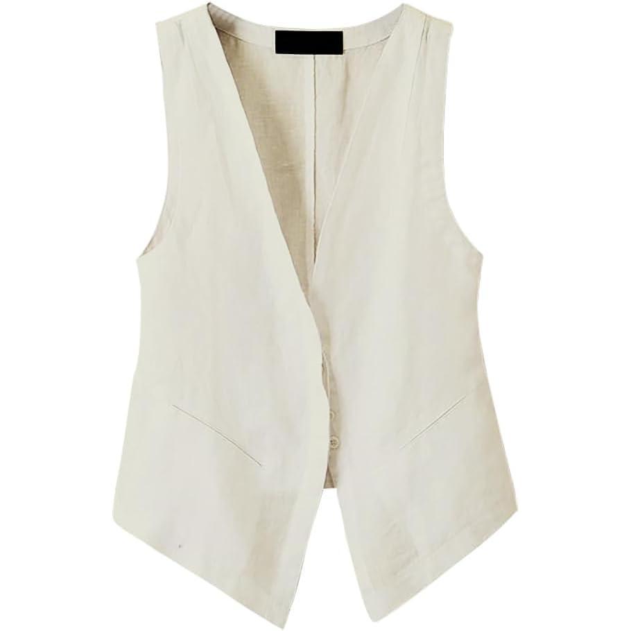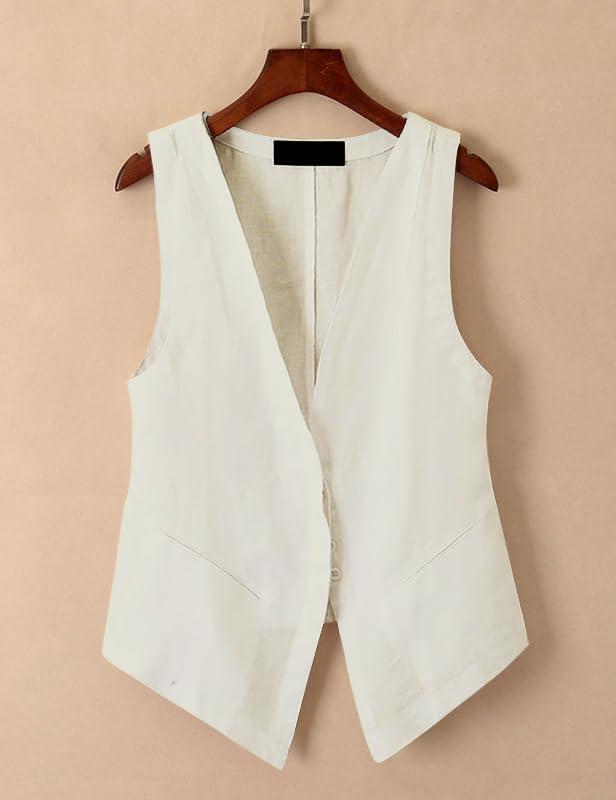 IDEALSANXUN Womens Linen Vest Tops Sleeveless Spring Summer Blazer Jackets(Beige)