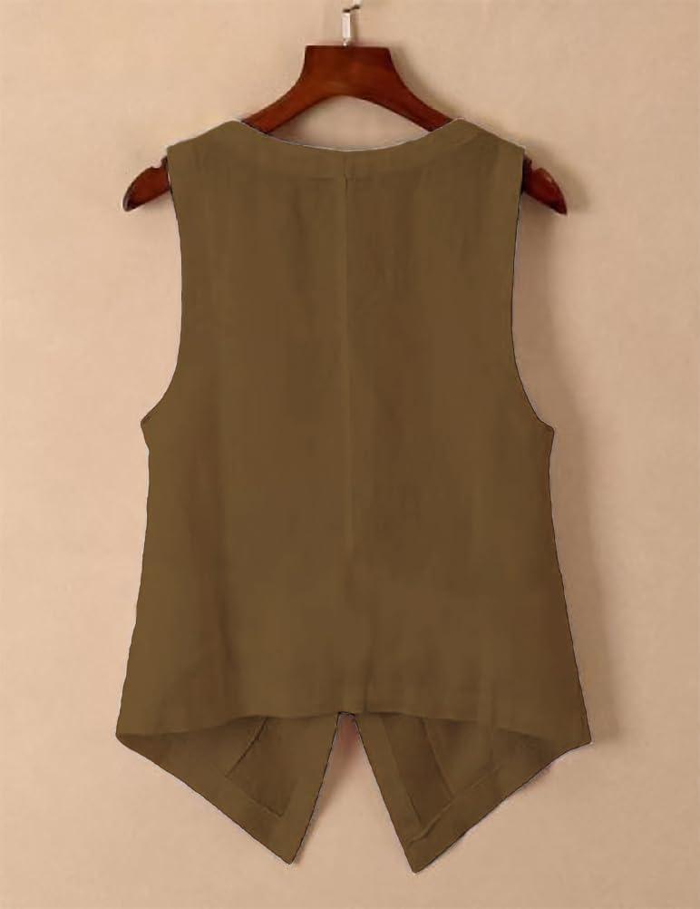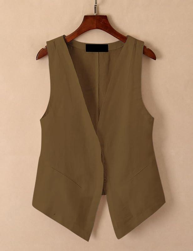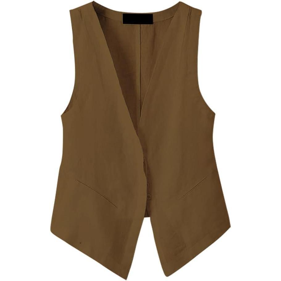 IDEALSANXUN Womens Linen Vest Tops Sleeveless Spring Summer Blazer Jackets(Khaki)