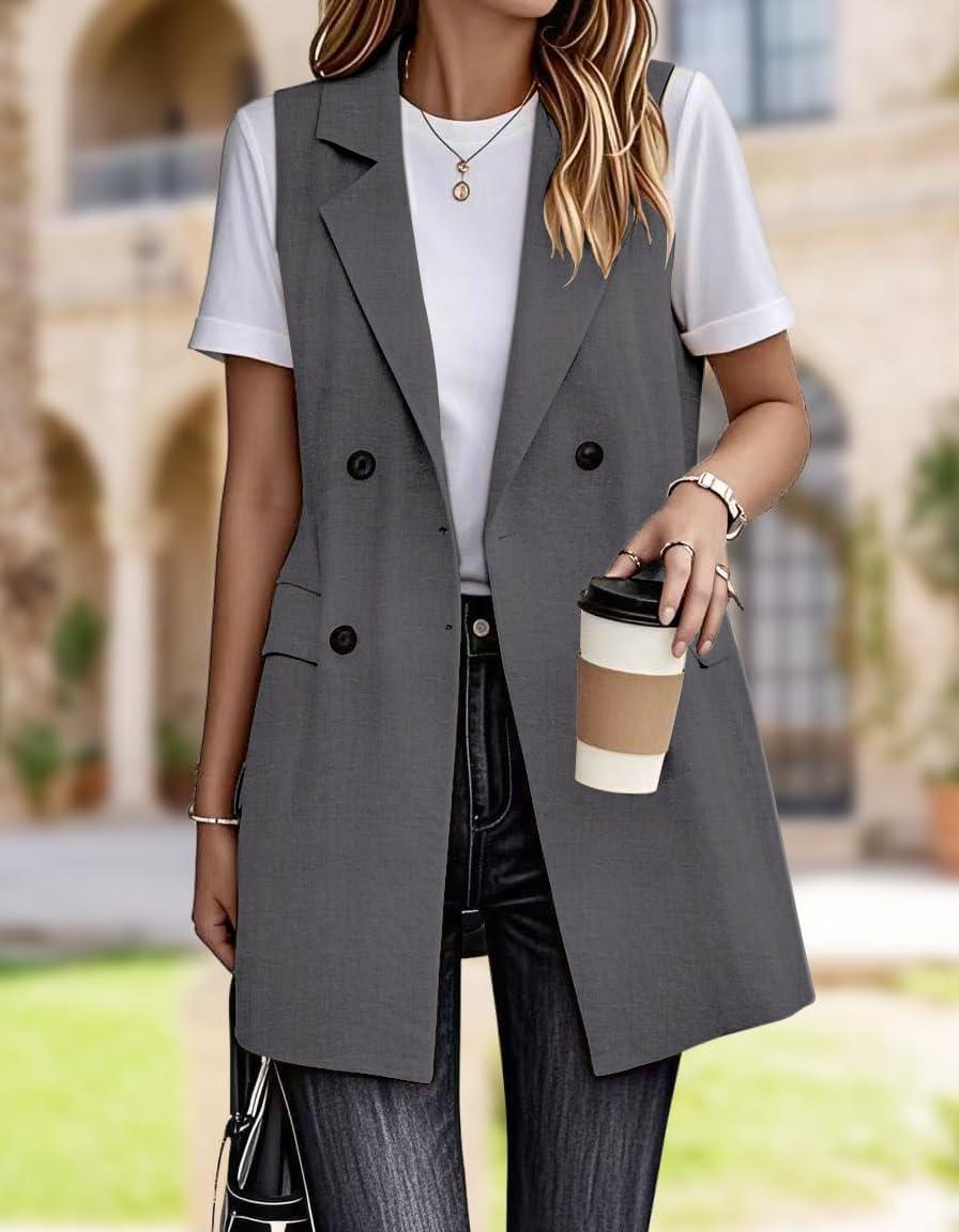 IDEALSANXUN Womens Long Linen Vest Dressy Sleeveless Blazer Jackets Outerwear Tops(Grey)