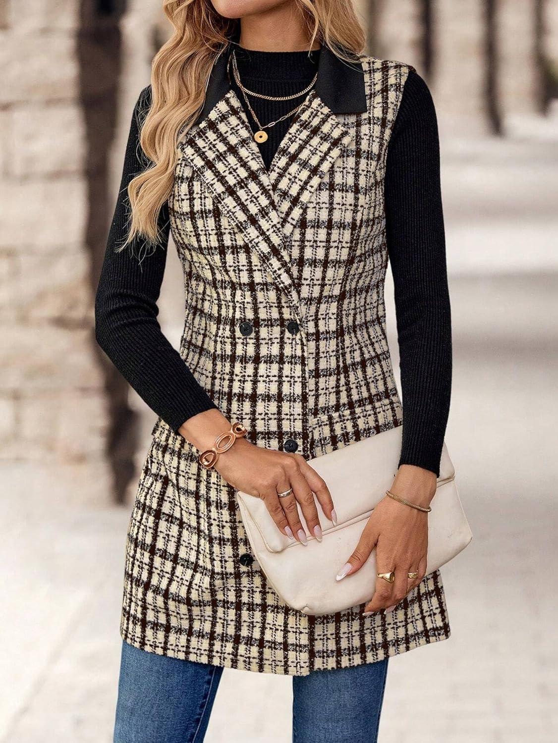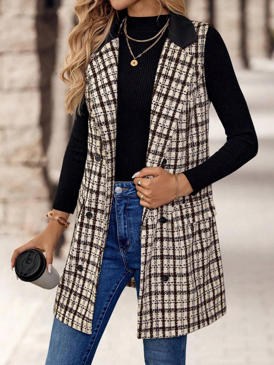 IDEALSANXUN Womens Long Tweed Vest Fall Winter Sleeveless Blazer Jackets Trench Coat(Brown)