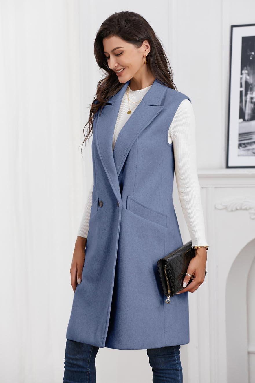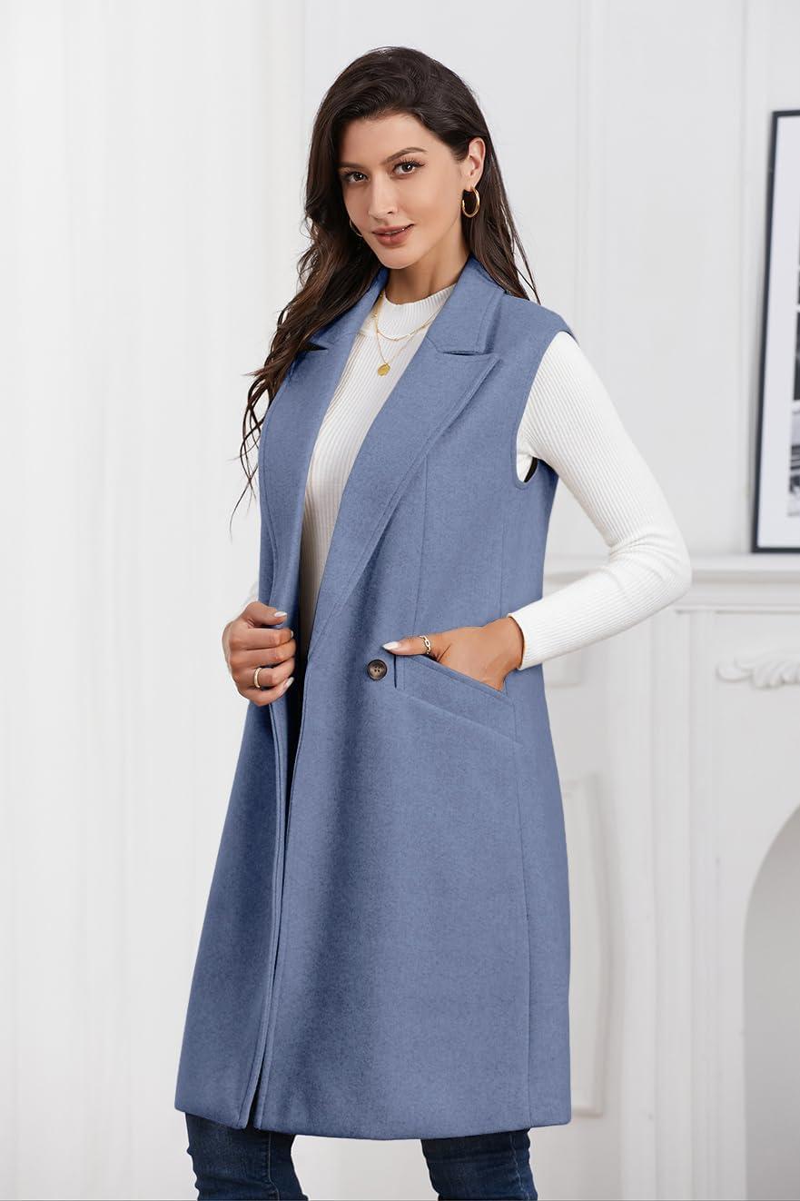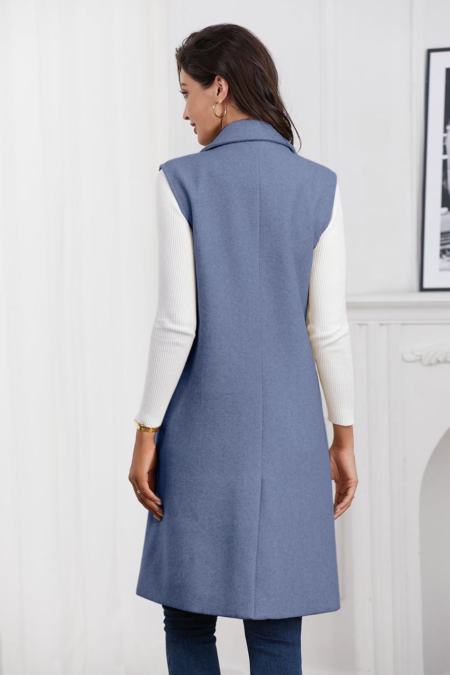 IDEALSANXUN Womens Long Vest Fall Winter Wool Sleeveless Blazer Jackets Waistcoat Coats(Blue)