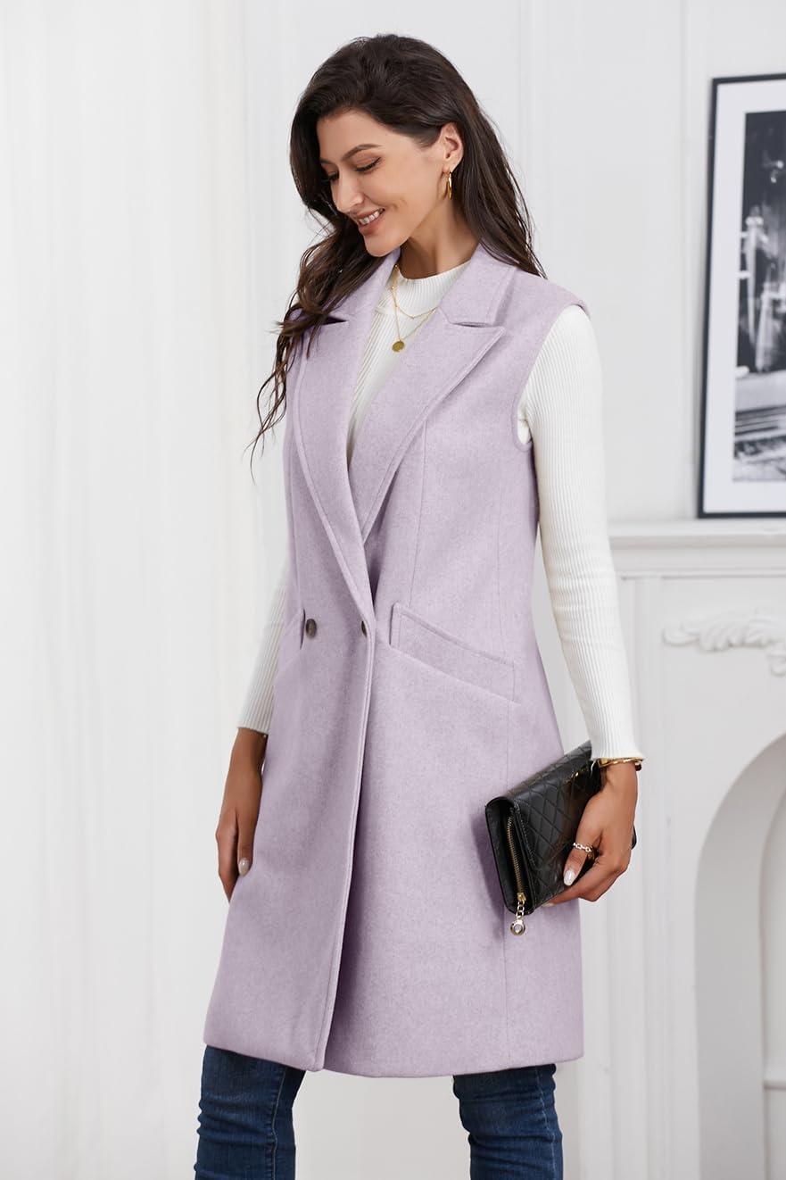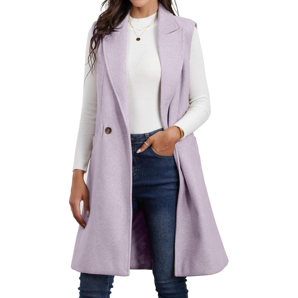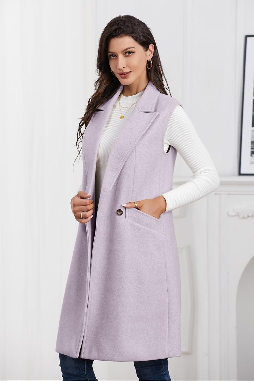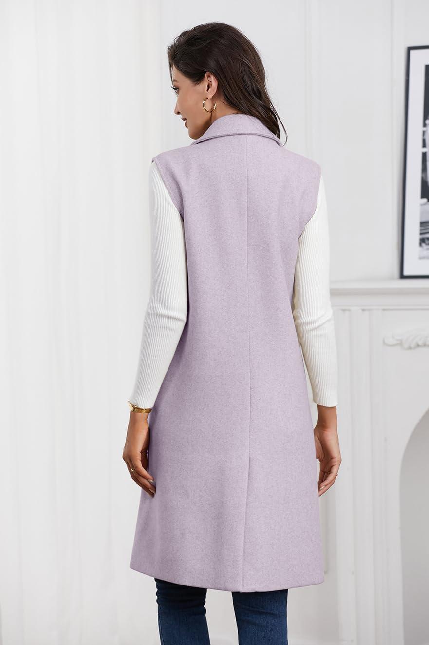 IDEALSANXUN Womens Long Vest Fall Winter Wool Sleeveless Blazer Jackets Waistcoat Coats(Purple)