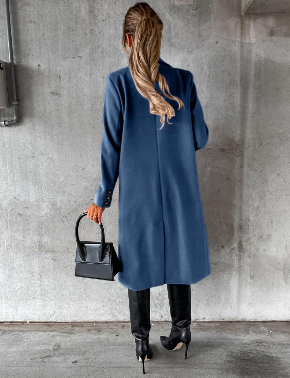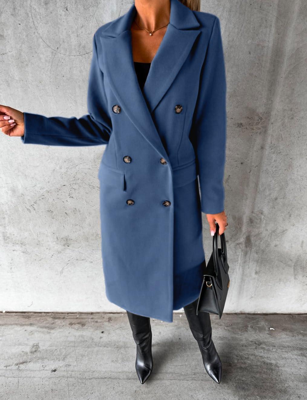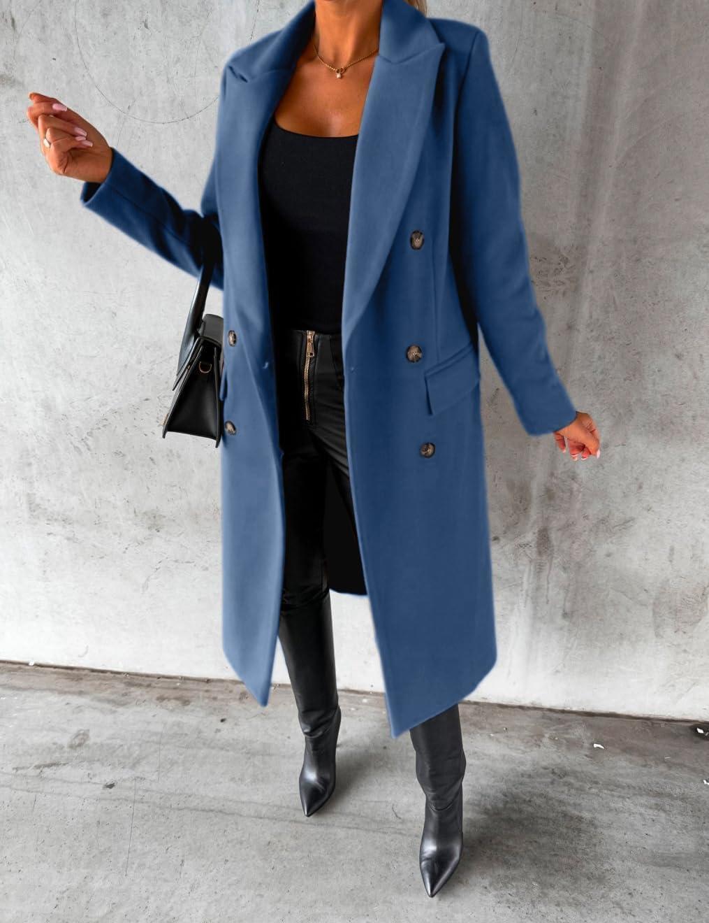 IDEALSANXUN Womens Long Wool Coat Double Breasted Trench Coat Fall Winter Clothes(Navy)