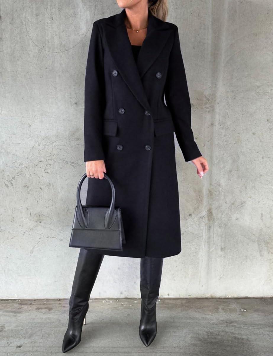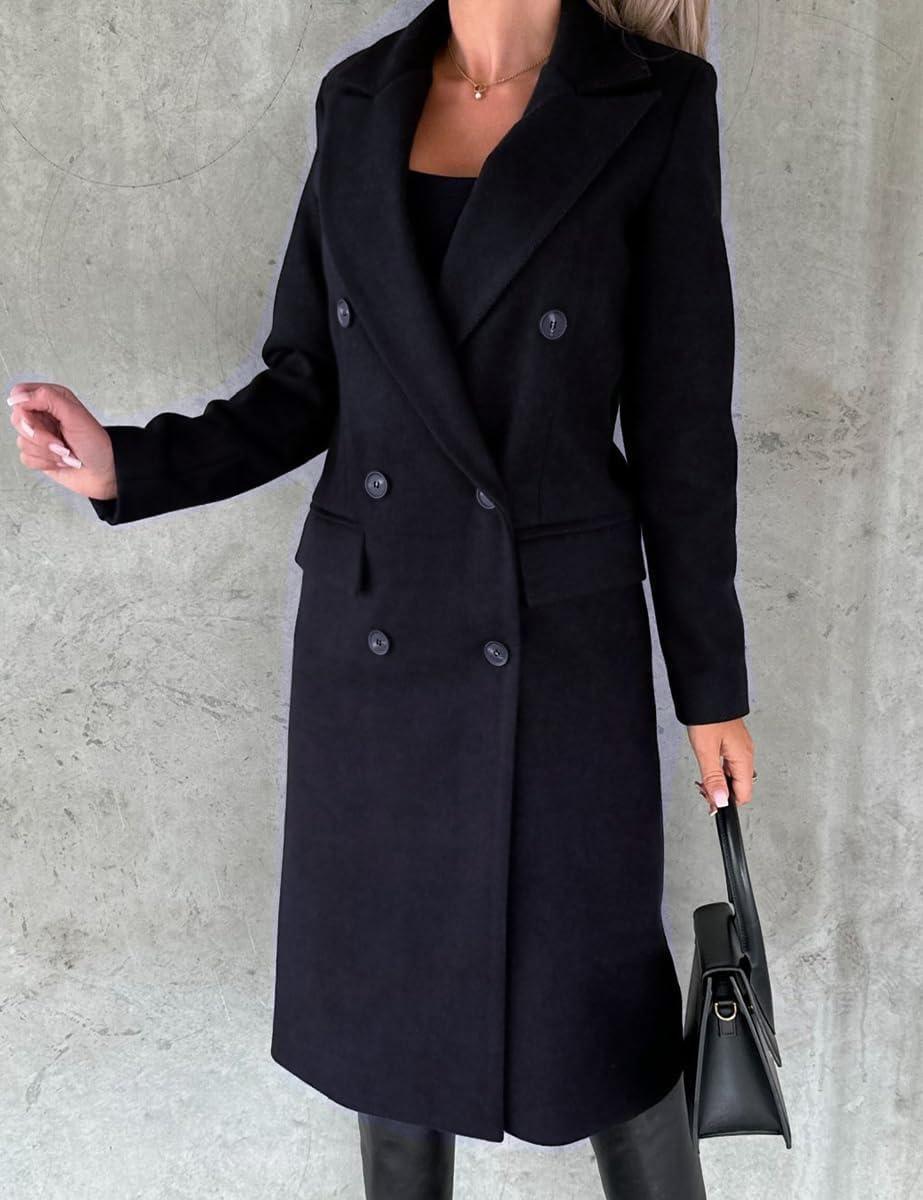 IDEALSANXUN Womens Long Wool Coat Double Breasted Trench Coat Fall Winter Clothes(Navy)