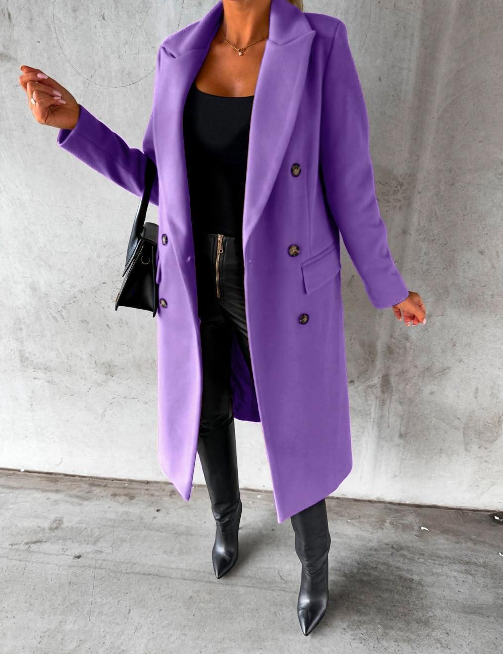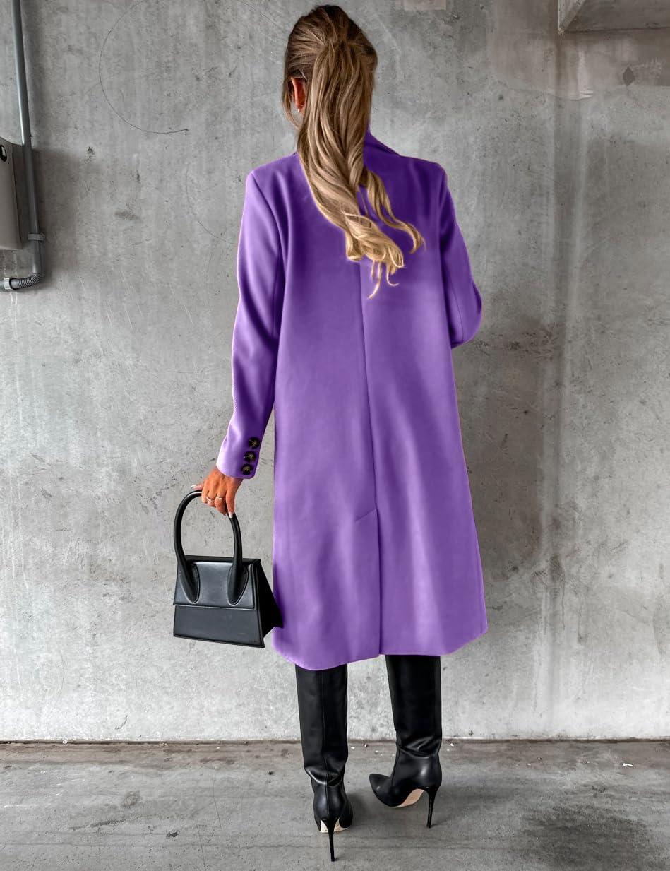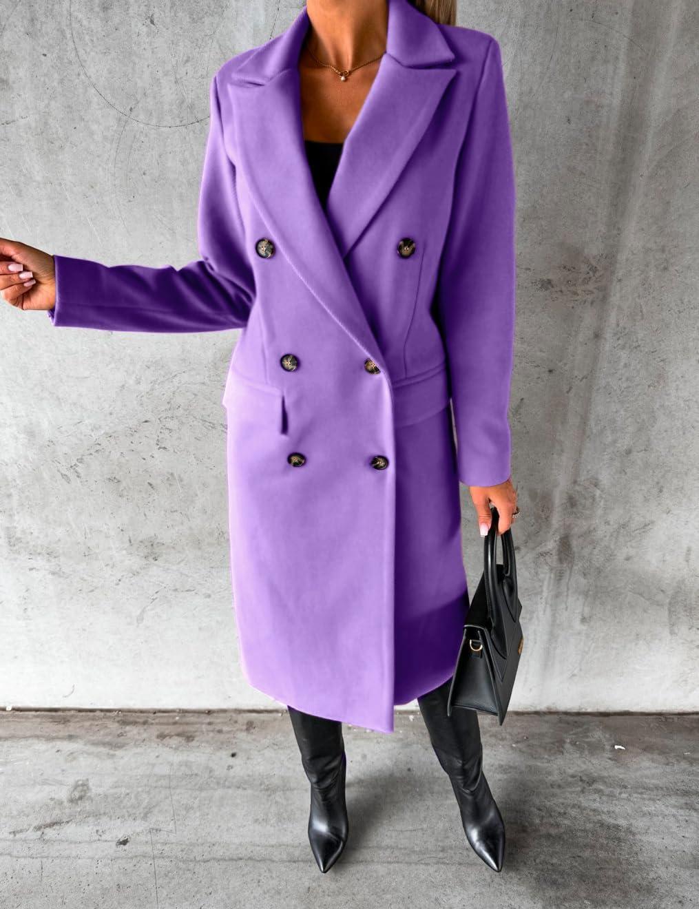 IDEALSANXUN Womens Long Wool Coat Double Breasted Trench Coat Fall Winter Clothes(Purple)