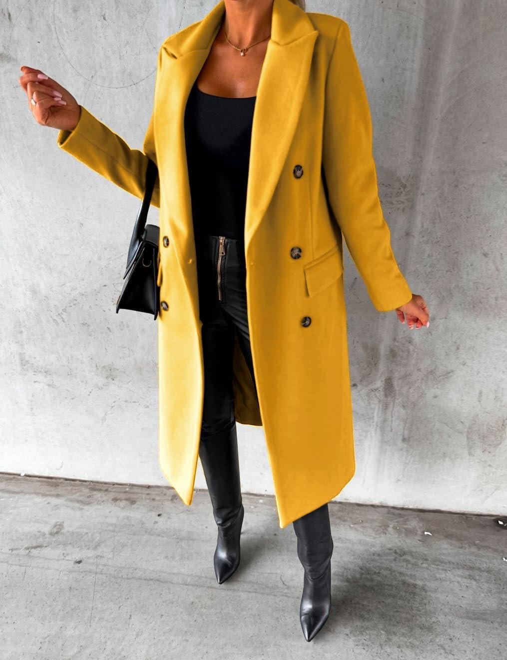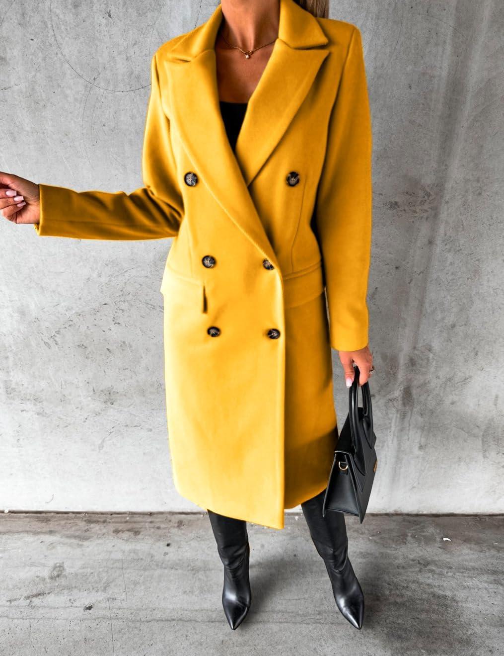 IDEALSANXUN Womens Long Wool Coat Double Breasted Trench Coat Fall Winter Clothes(Yellow)