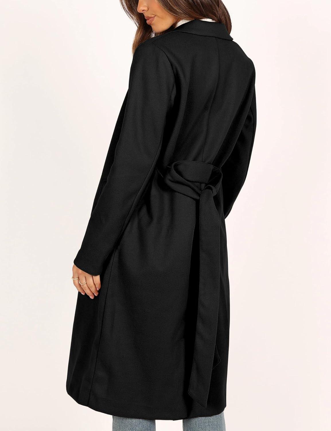 IDEALSANXUN Womens Long Wool Coat Fall Winter Notch Lapel Trench Coat Peacoat Jackets(Black)