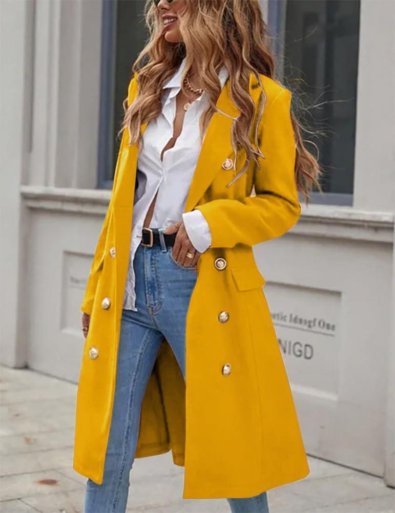 IDEALSANXUN Womens Long Wool Coat for Women Fall Winter Trench Coat Trendy Jackets(Yellow)