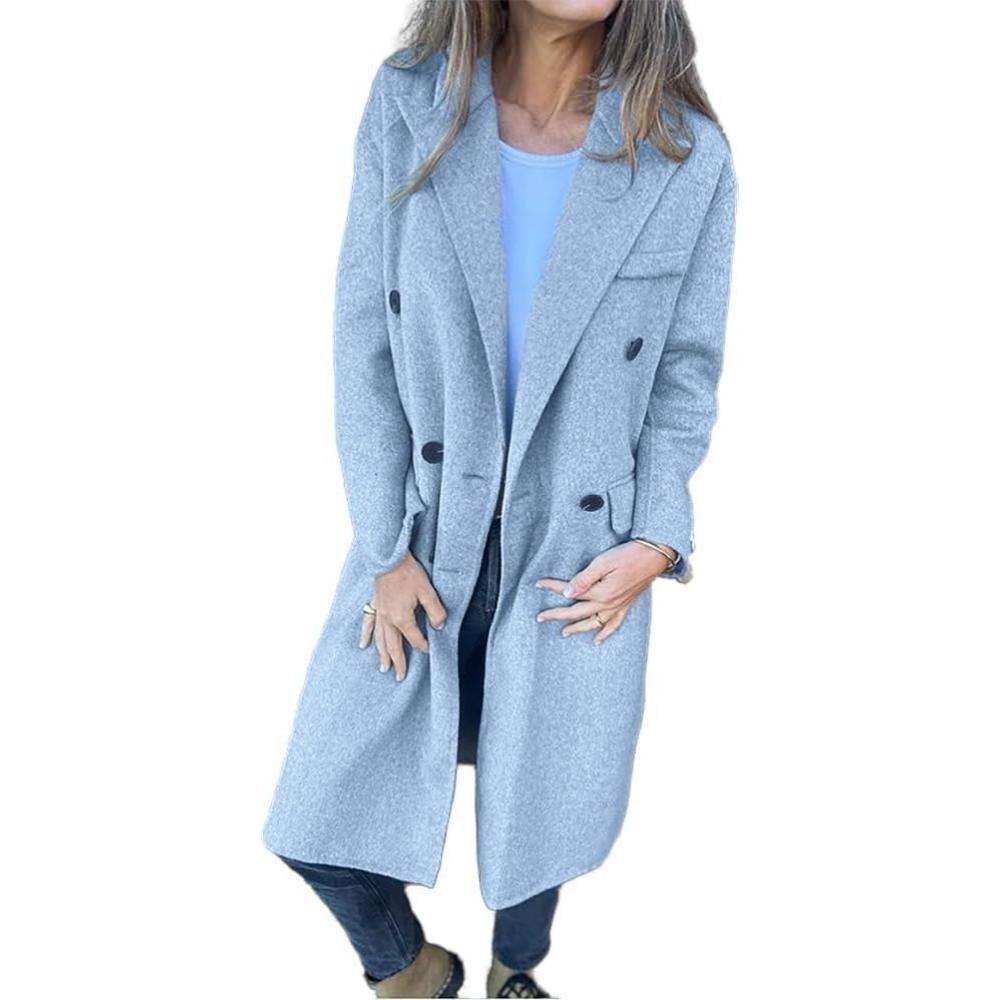 IDEALSANXUN Womens Long Wool Coats Fall Winter Double Breasted Trench Coat Peacoat Dress Blazer Jackets(Grey)