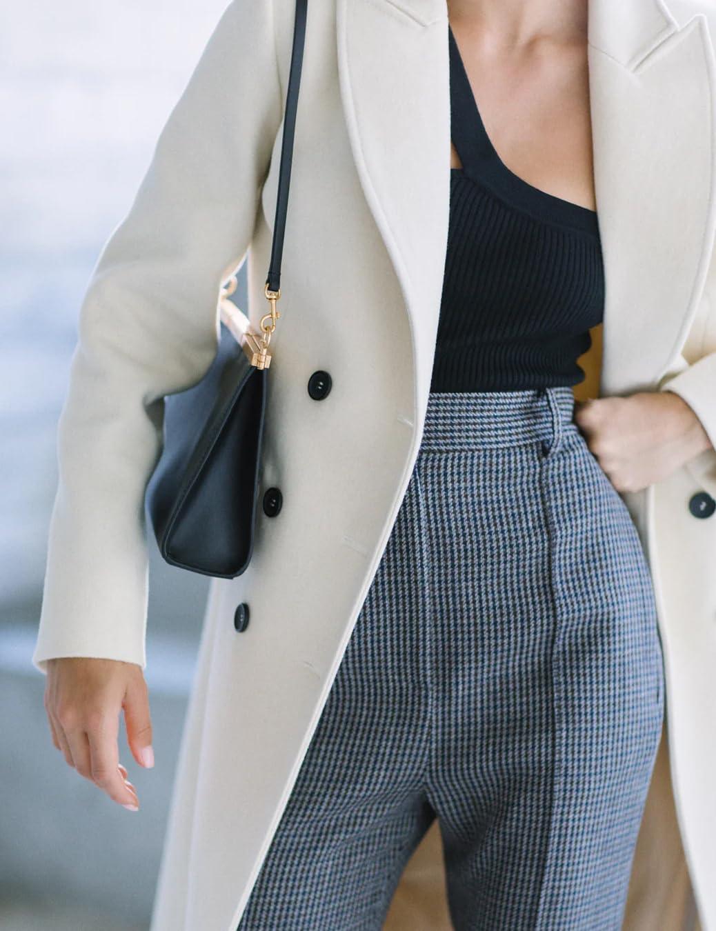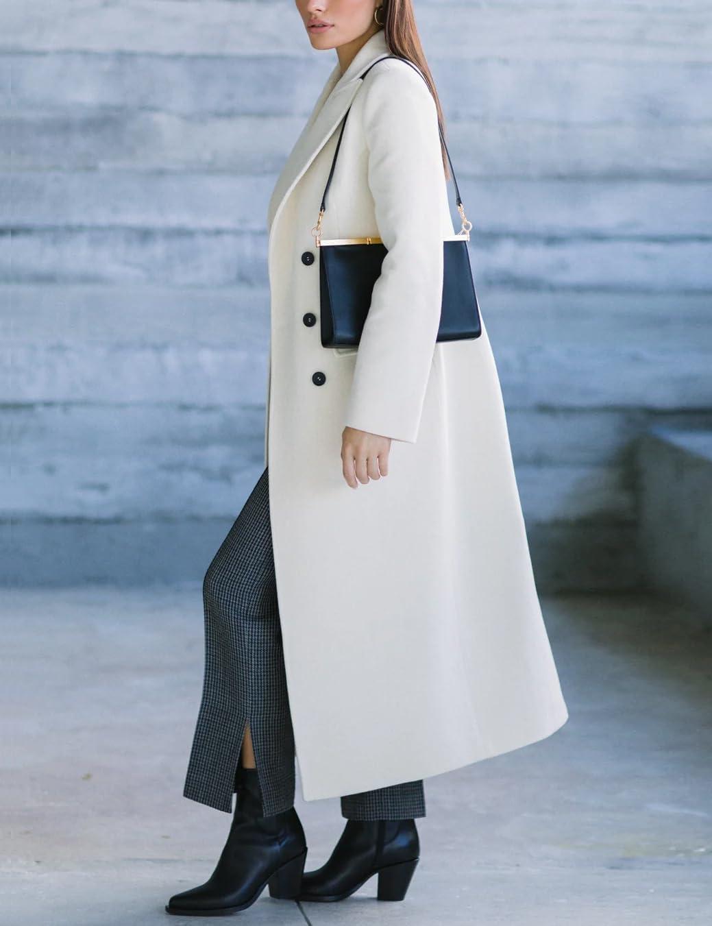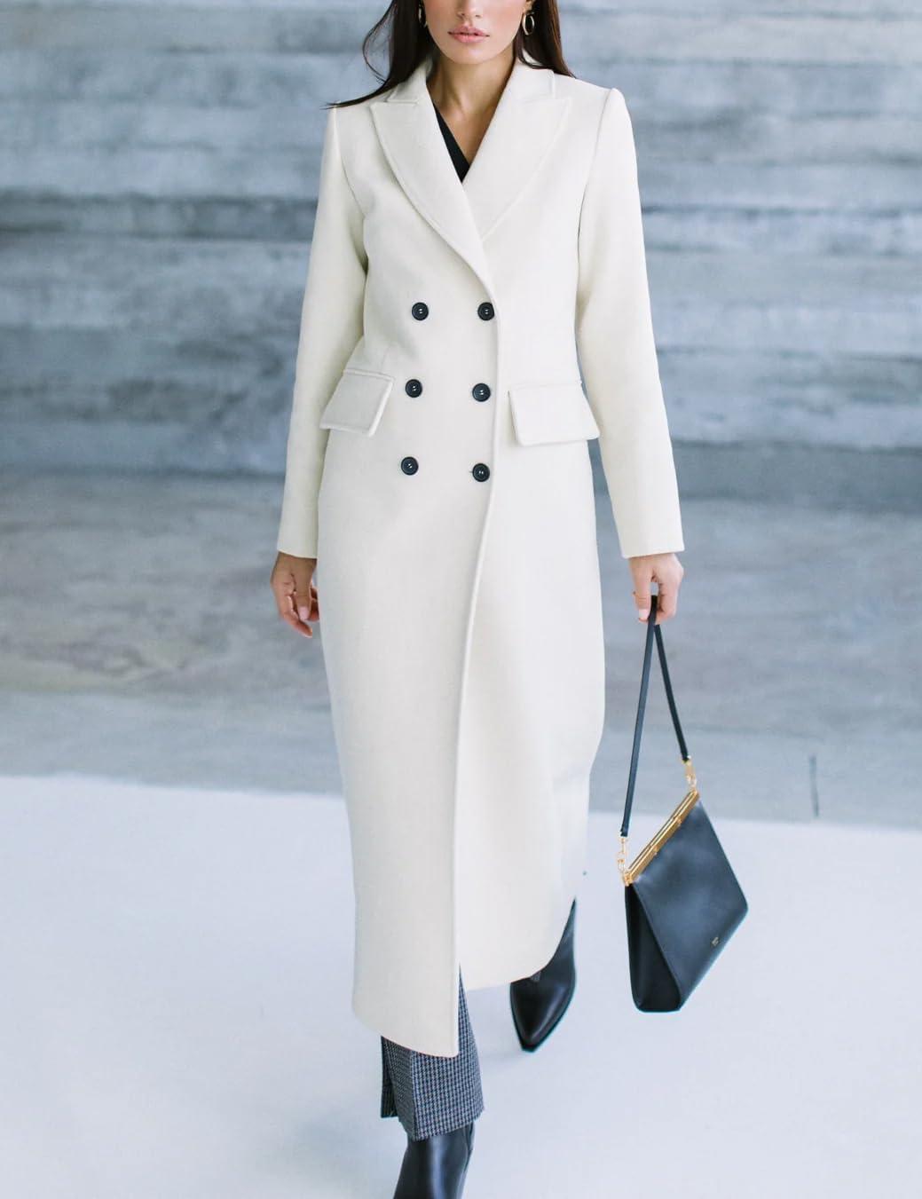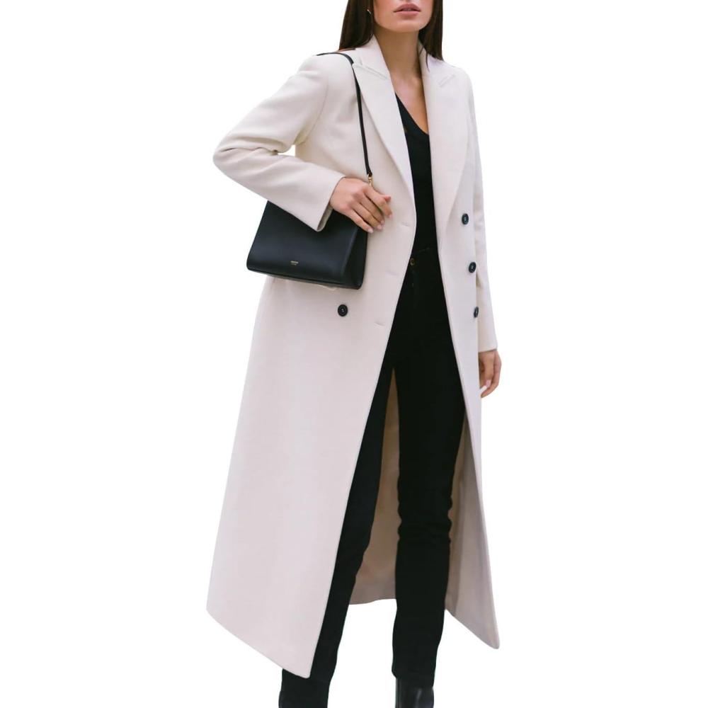 IDEALSANXUN Womens Long Wool Coats Fall Winter Notch Lapel Double Breasted Trench Coat Wool Jackets(White)