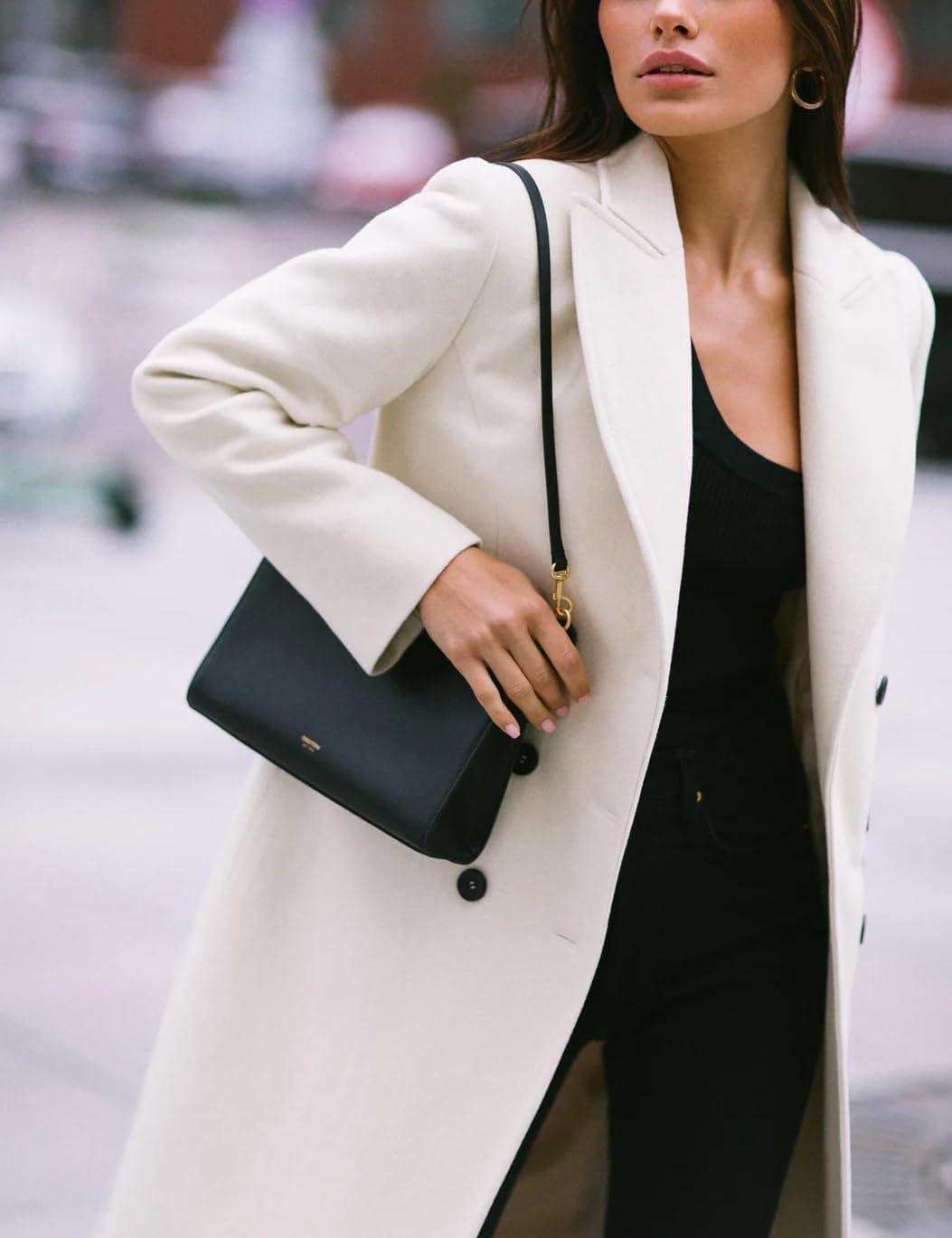 IDEALSANXUN Womens Long Wool Coats Fall Winter Double Breasted Trench Coat Peacoat(Black)