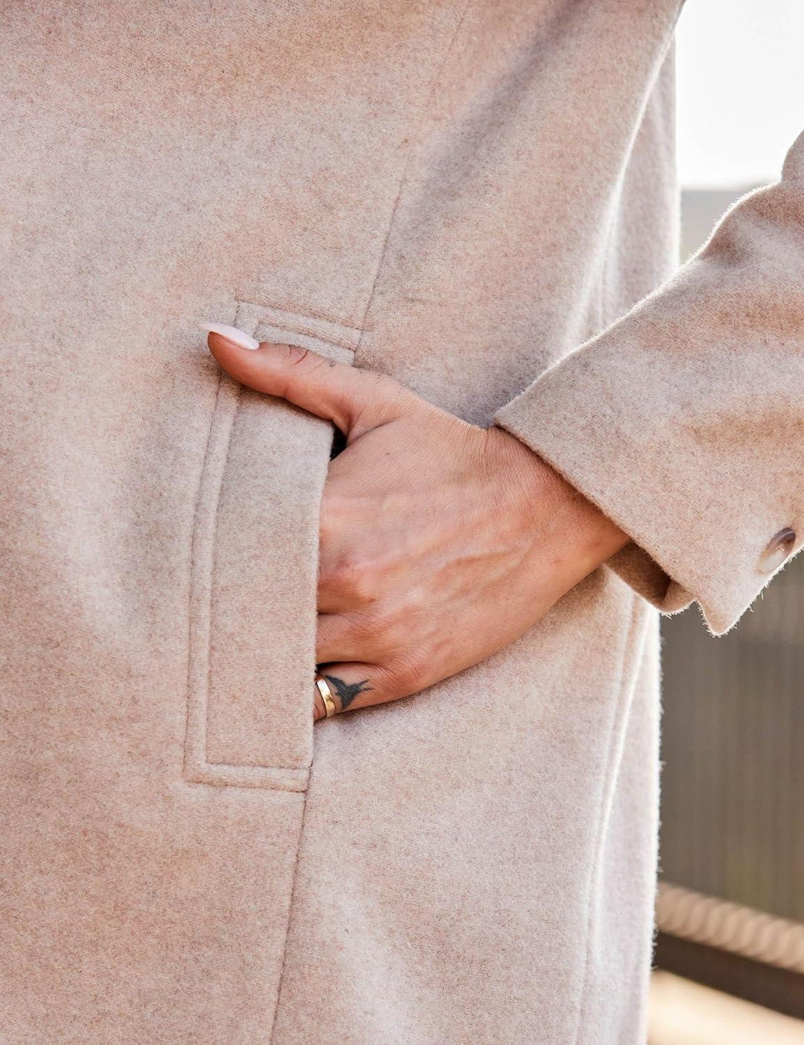 IDEALSANXUN Womens Long Wool Coats Fall Winter Single Breasted Trench Coat Dressy Jackets Peacoat(Beige)
