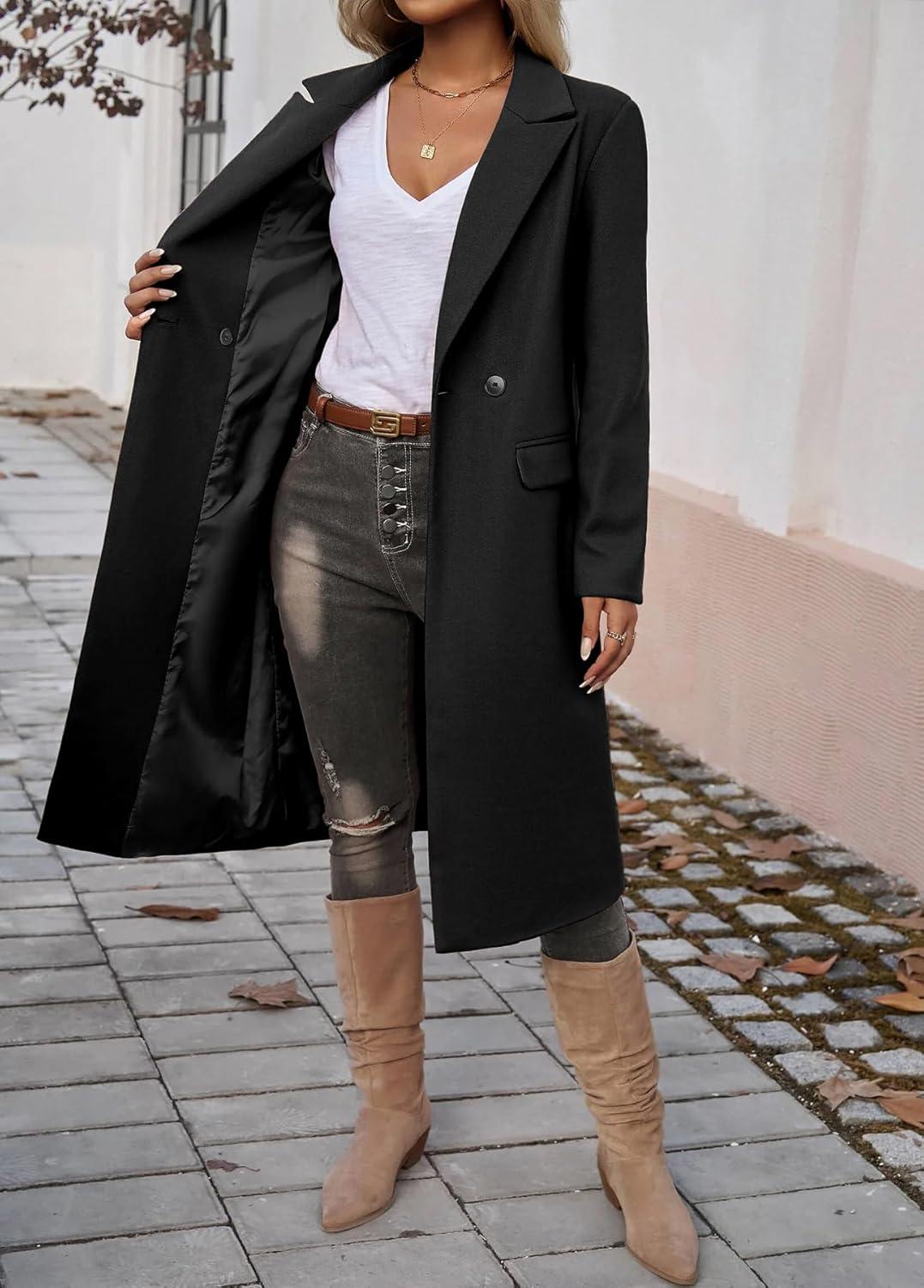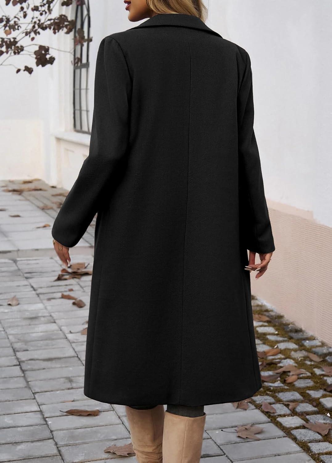 IDEALSANXUN Womens Long Wool Coats Fall Winter Trench Coat Peacoat Dress Jackets(Black)
