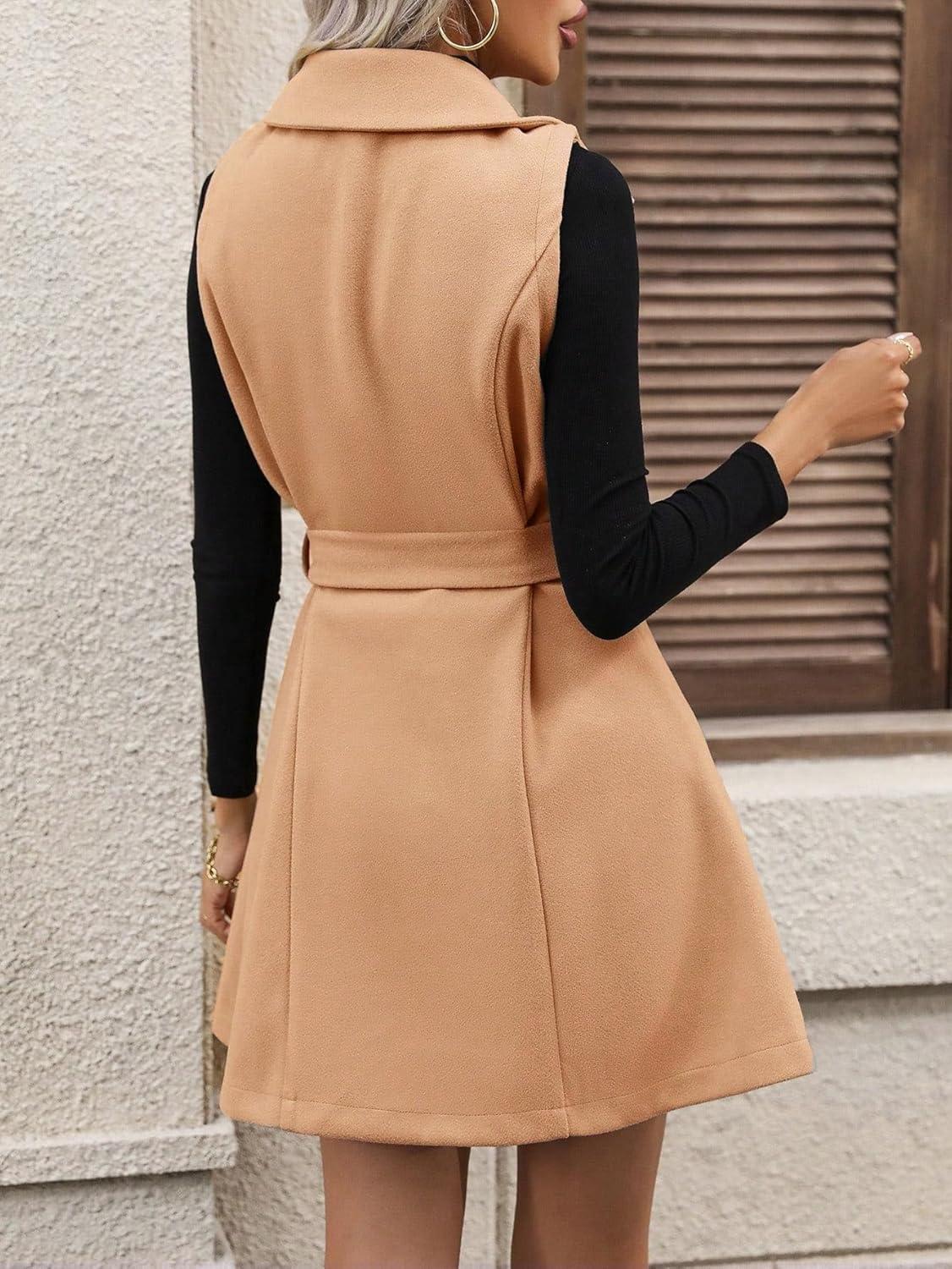 IDEALSANXUN Womens Long Wool Vest Fall Winter Sleeveless Blazer Jackets Double Breasted Trench Coat with Belt(Camel)