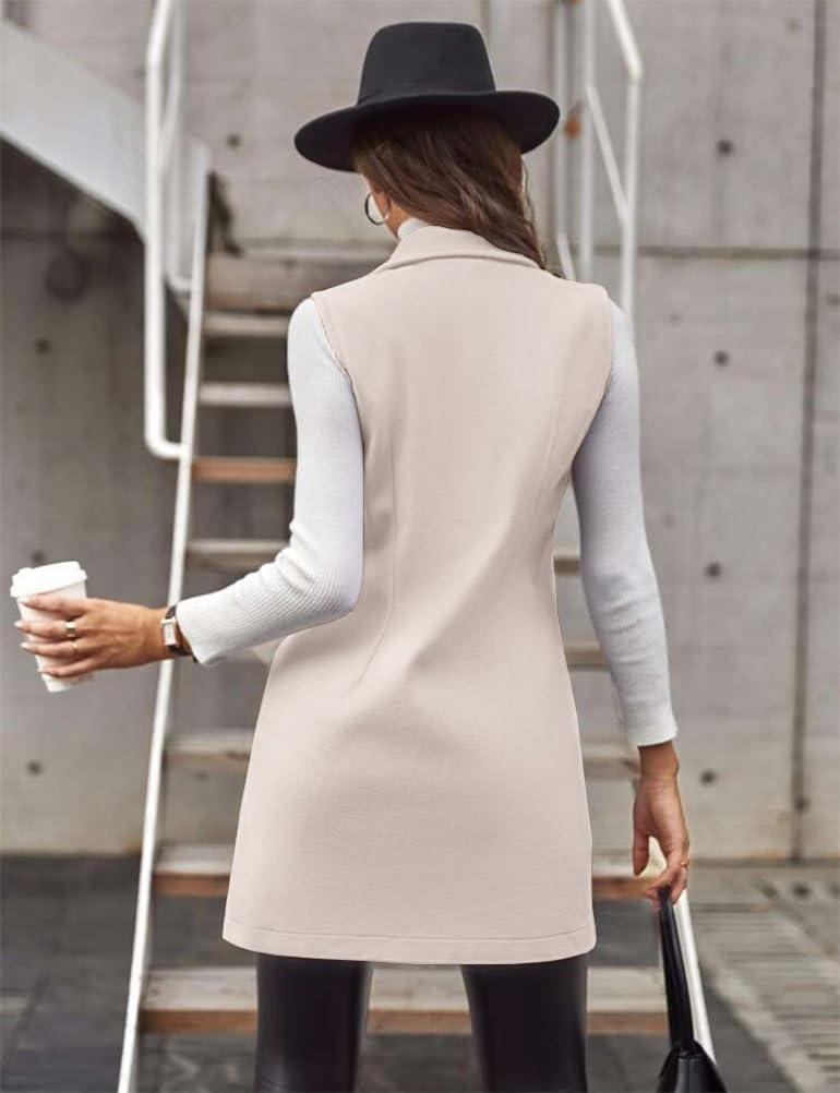 IDEALSANXUN Womens Long Vest Sleeveless Blazer Dressy Spring Summer Suit Jackets(Khaki)