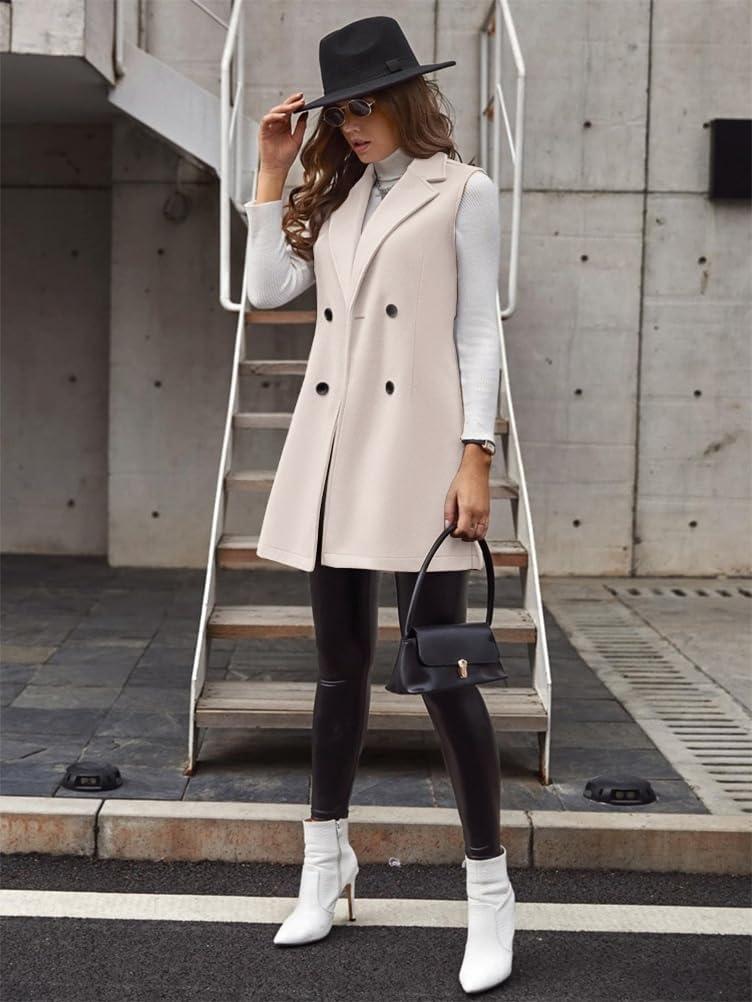 IDEALSANXUN Womens Long Wool Vest Fall Winter Sleeveless Blazer Jackets Double Breasted Trench Coats(Beige)