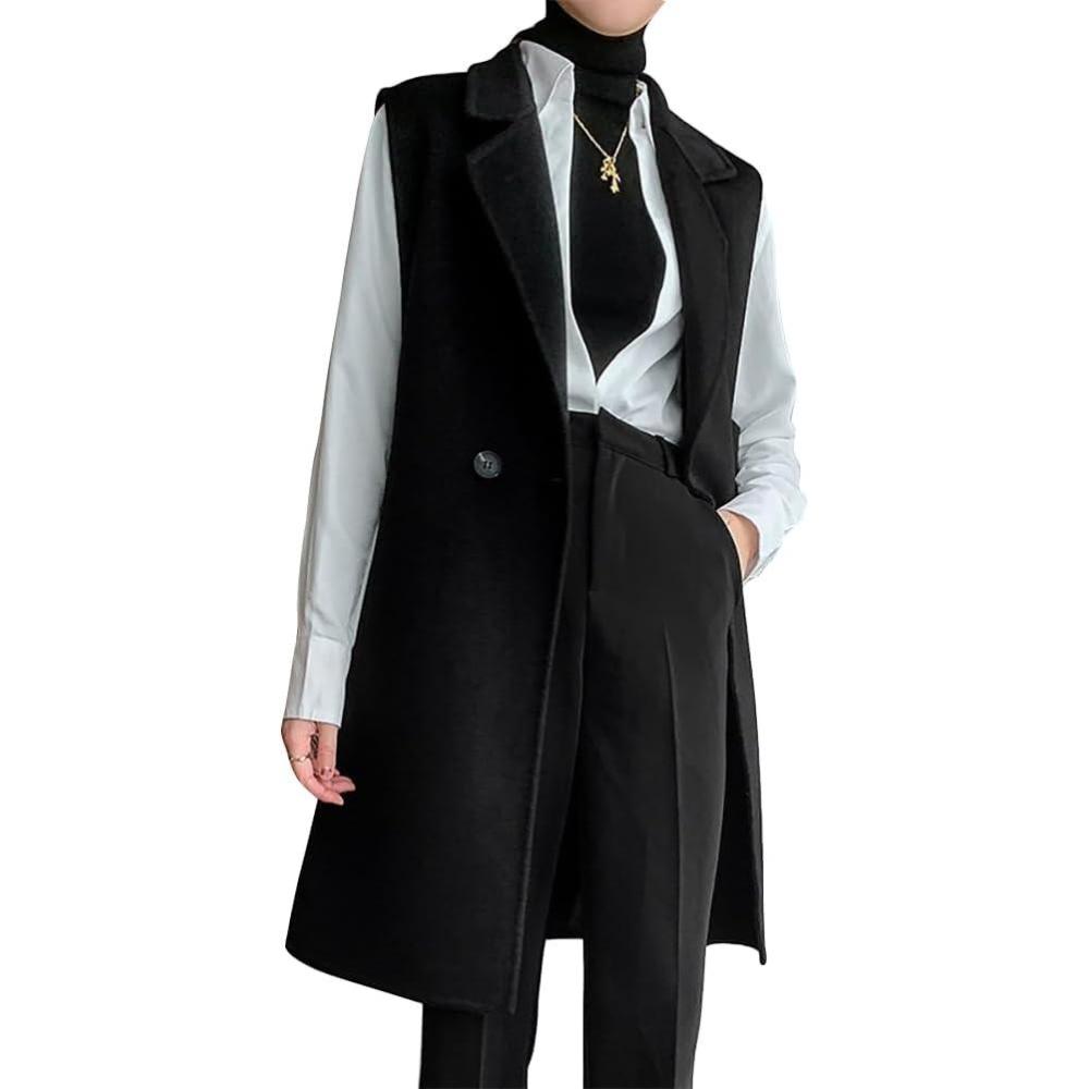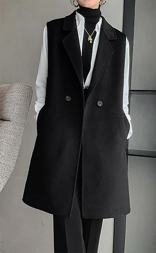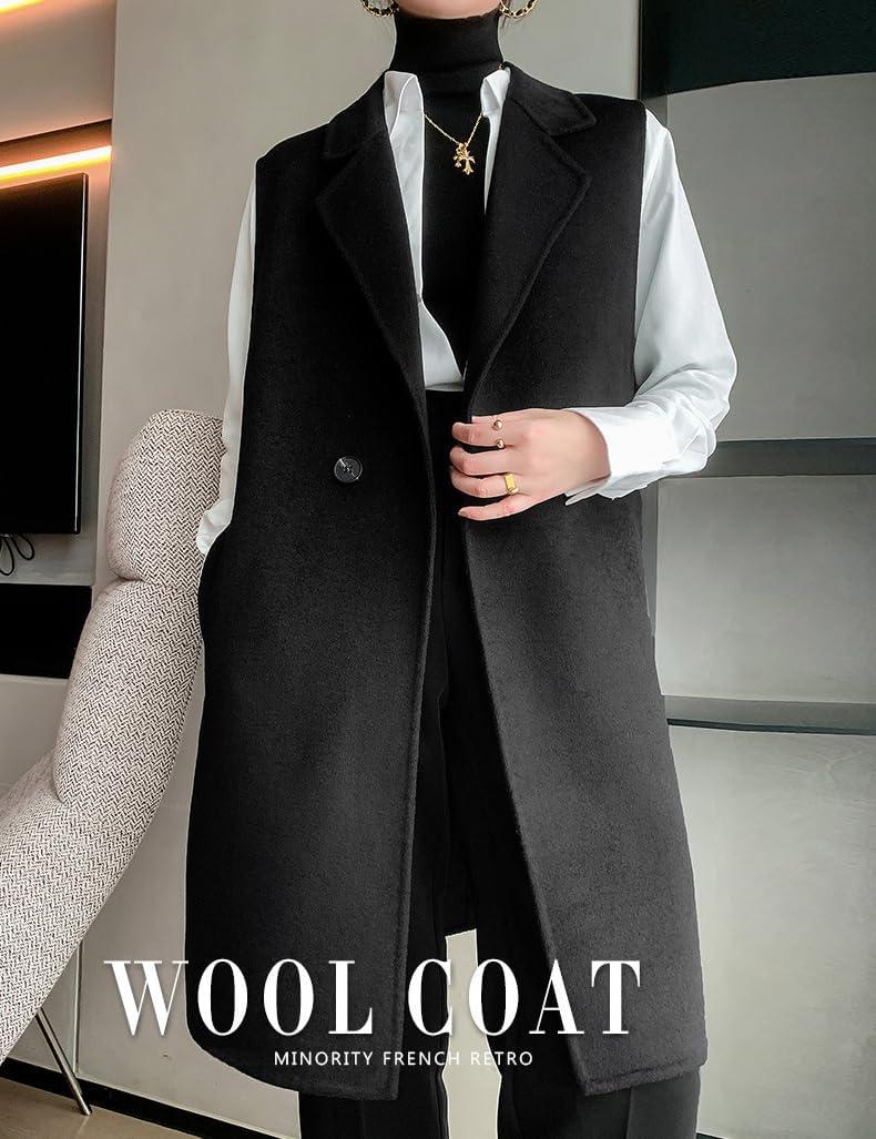 IDEALSANXUN Womens Long Wool Vest Fall Winter Sleeveless Blazer Jackets Wool Coat(Black)