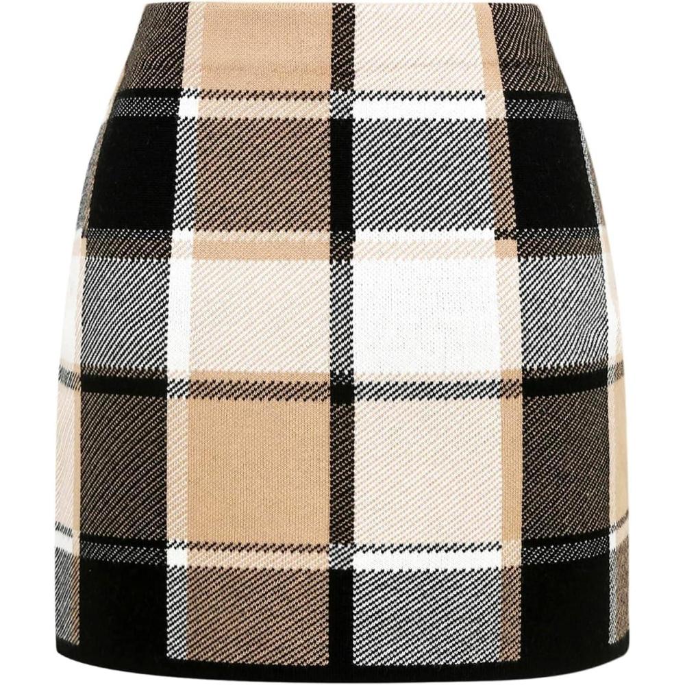 IDEALSANXUN Womens Plaid Mini Skirt Fall Winter High Elastic Waist Short Pencil Skirt(A Brown New)