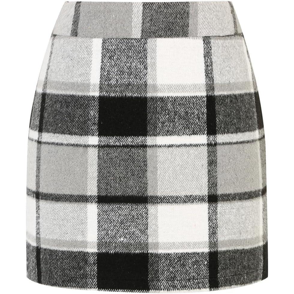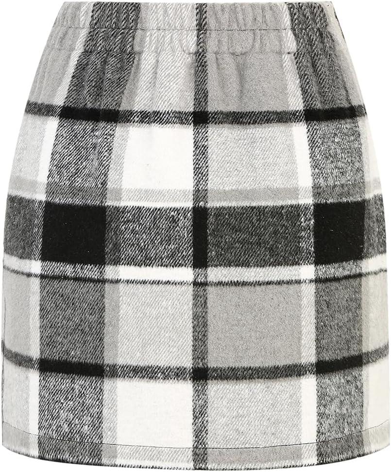 IDEALSANXUN Womens Plaid Mini Skirt Fall Winter High Elastic Waist Short Pencil Skirt(Grey New)