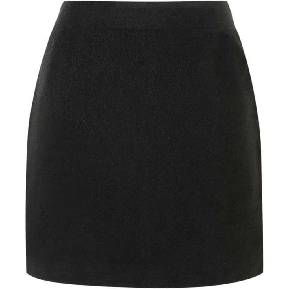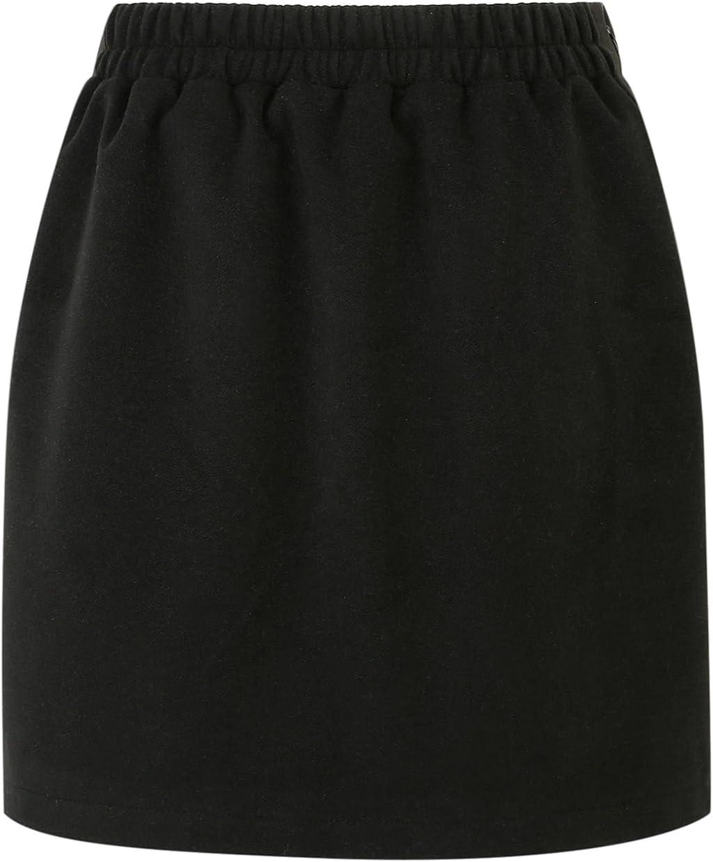 IDEALSANXUN Womens Plaid Mini Skirt Fall Winter High Elastic Waist Short Pencil Skirt(Pure Black)