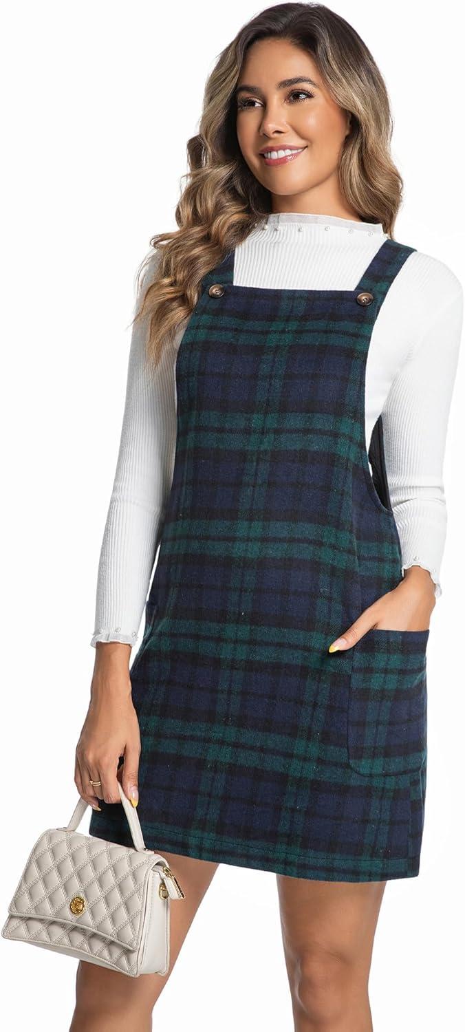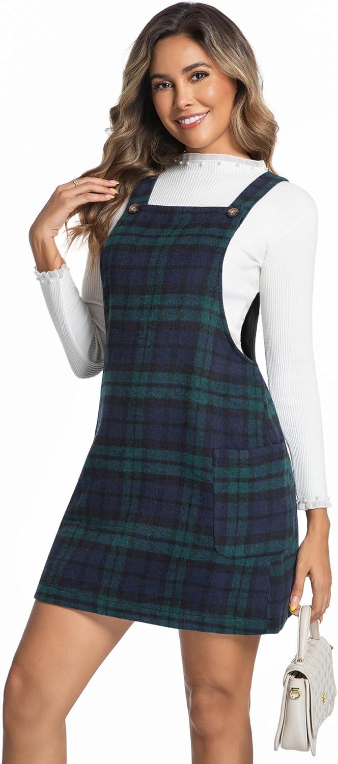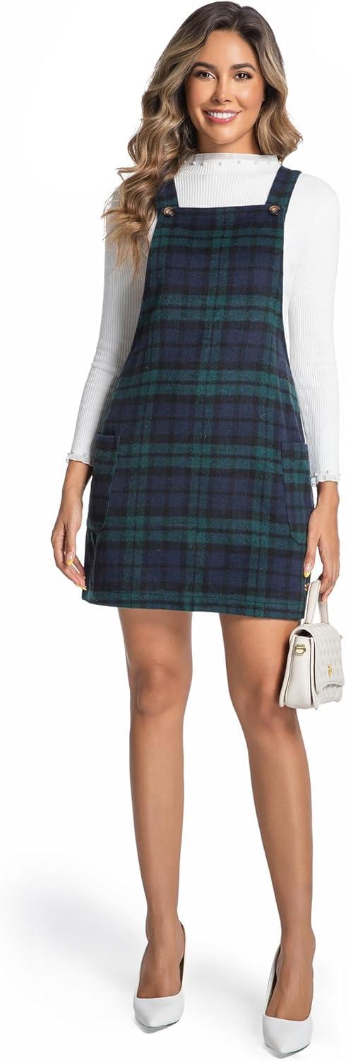 IDEALSANXUN Womens Plaid Overall Dress Fall Winter Casual Sleeveless Pinafore Jumper Overalls(Green)