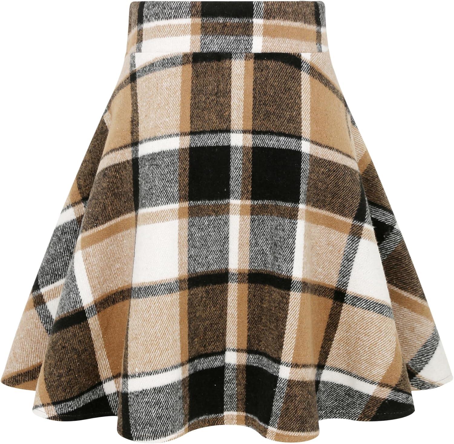IDEALSANXUN Womens Plaid Skirt Fall Winter High Waisted A Line Pleated Mini Skirt(Brown)