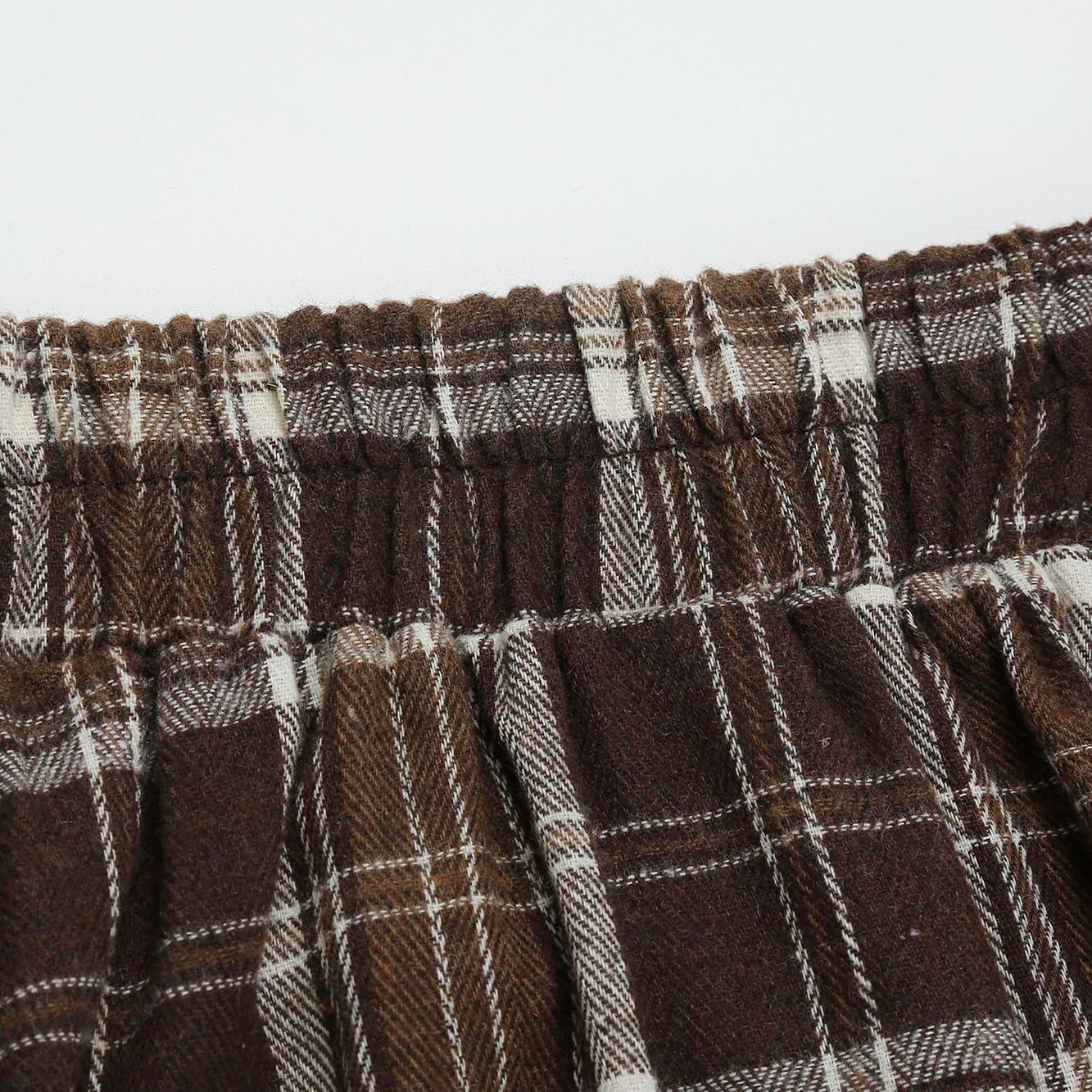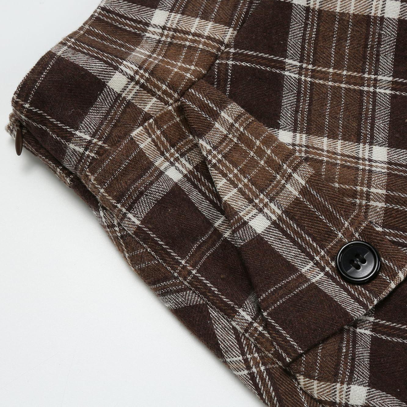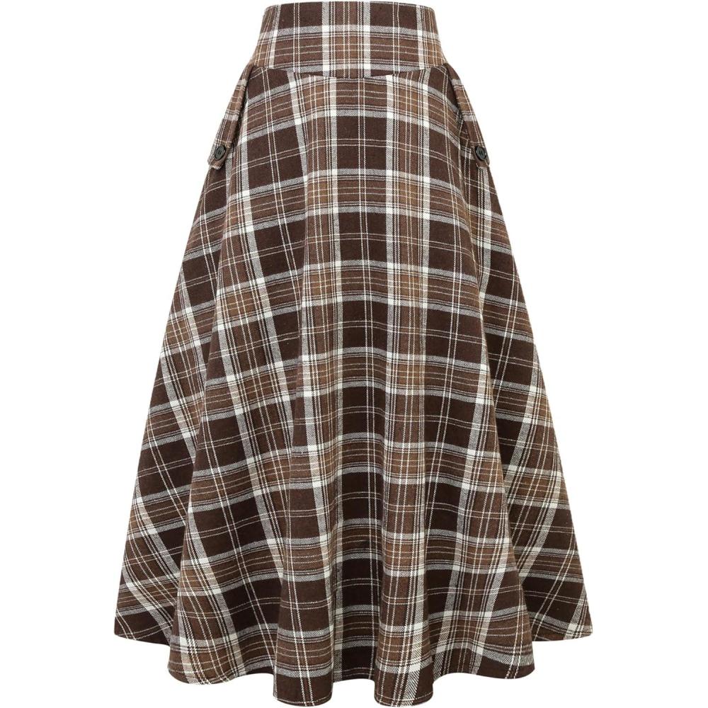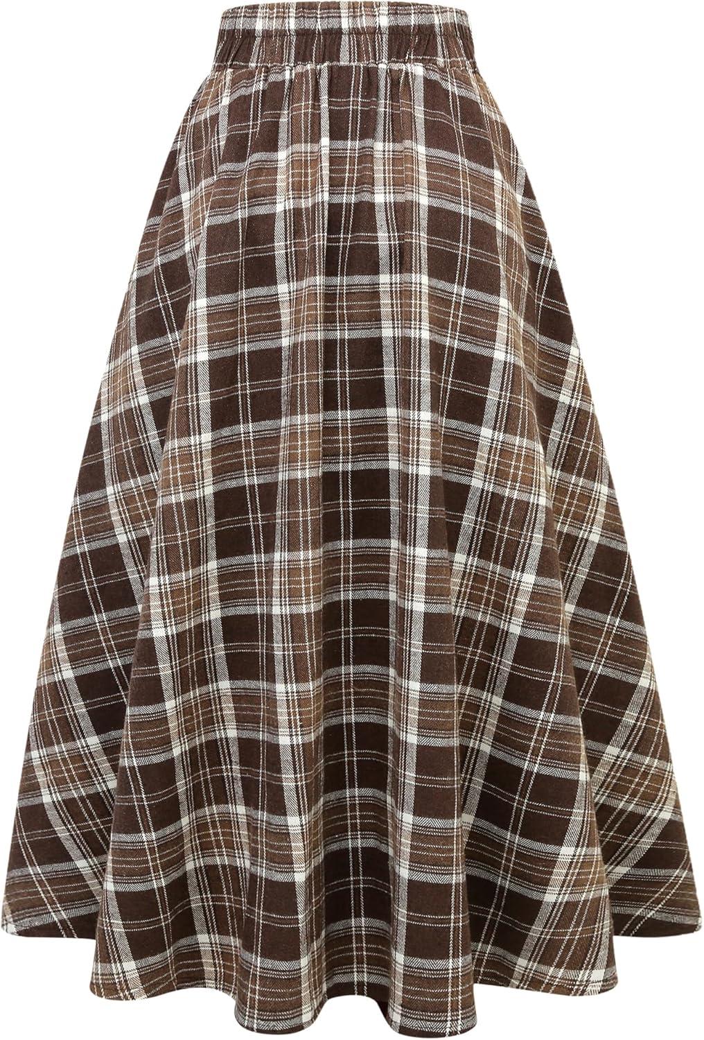 IDEALSANXUN Womens Plaid Skirts Fall Winter High Waisted A Line Long Pleated Maxi Skirt with Pockets(Brown)