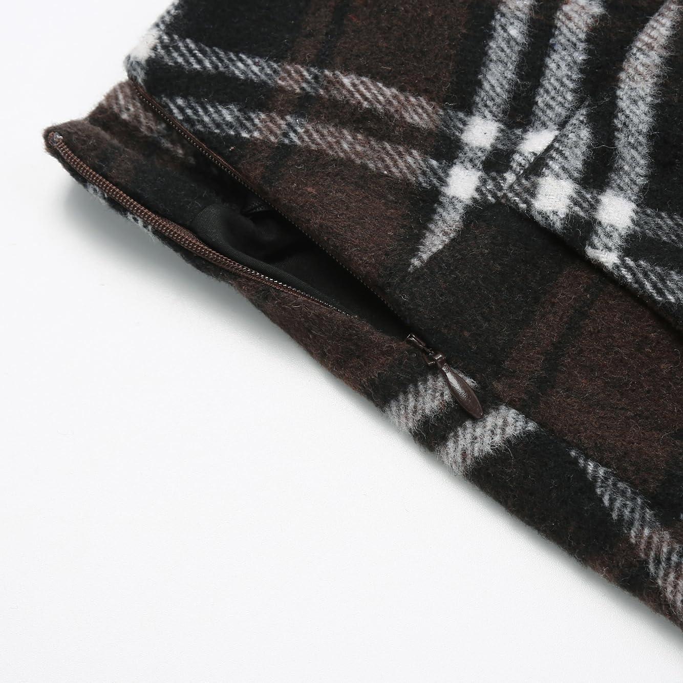 imageIDEALSANXUN Womens Plaid Skirts Fall Winter High Waisted Button Down A Line Pleated Midi Skirt with PocketsBrown New